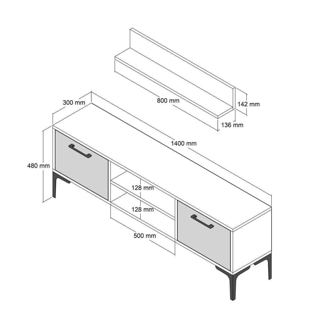 • TV Stand Dimensions: Width: 140 cm, Height: 48 cm, Depth: 30 cm