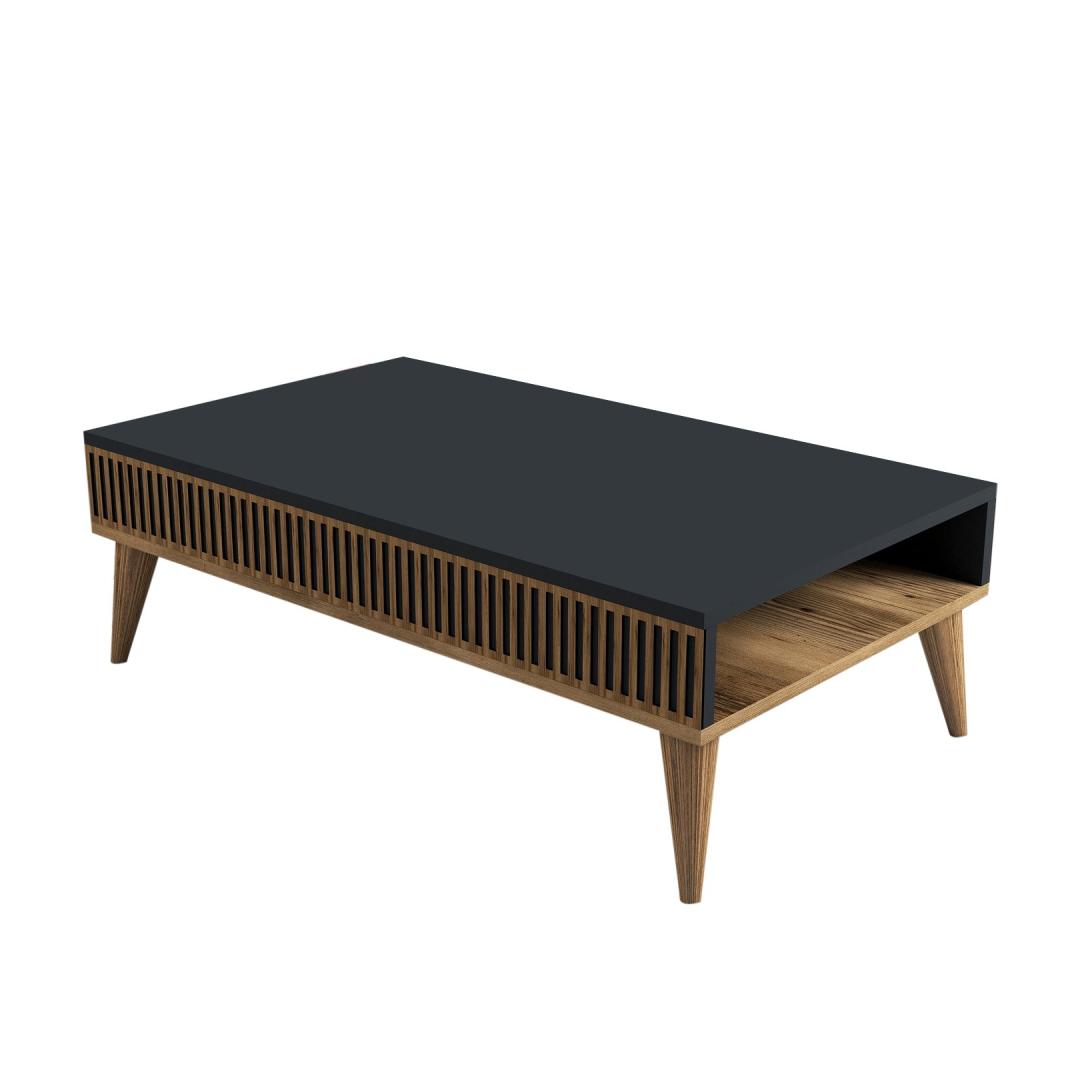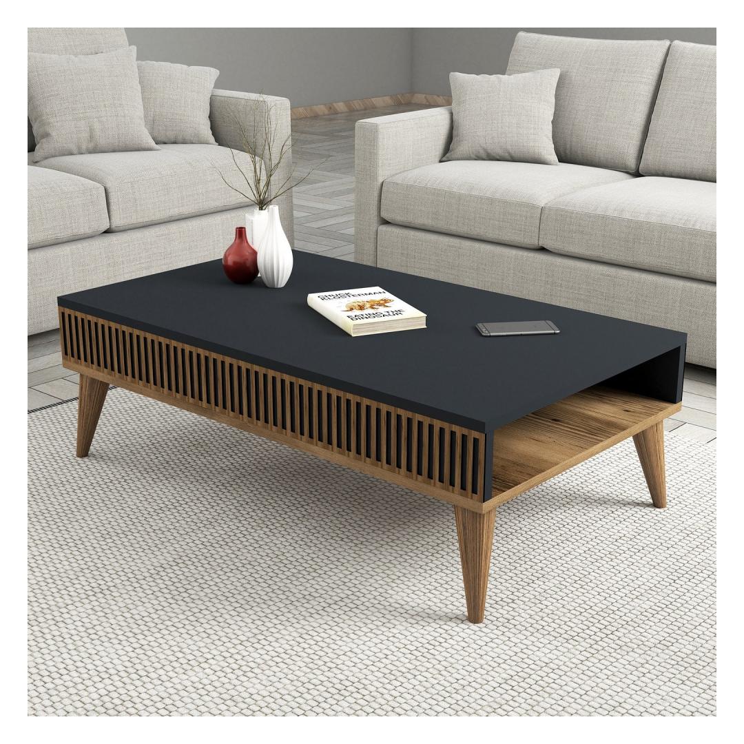 With its sleek and modern design, this coffee table is sure to become the focal point of your room. The combination of Walnut and Anthracite colors adds a touch of sophistication, effortlessly complementing any decor style. Its clean lines and smooth surface create a sense of harmony and balance, inviting you to relax and unwind.