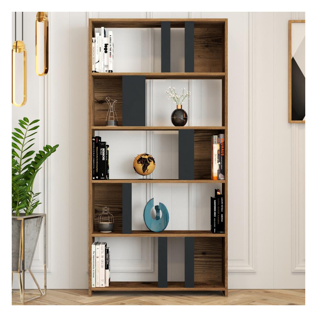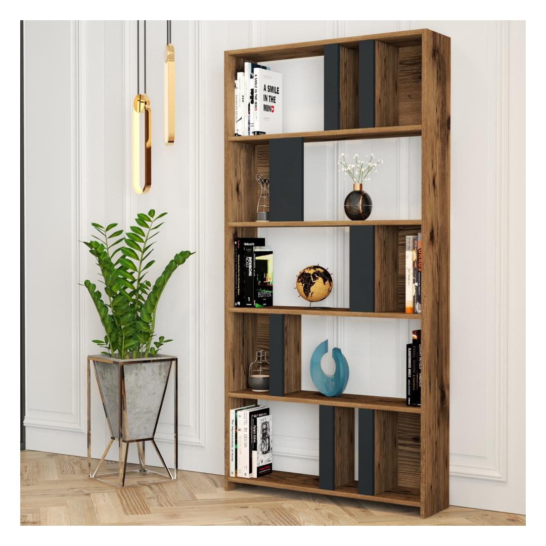 This bookshelf is not just a piece of furniture, it's a statement of your taste and personality. With its modern and novel design, it will instantly elevate the look of any room in your home. The combination of Walnut and Anthracite colors adds a touch of warmth and sophistication to your space.