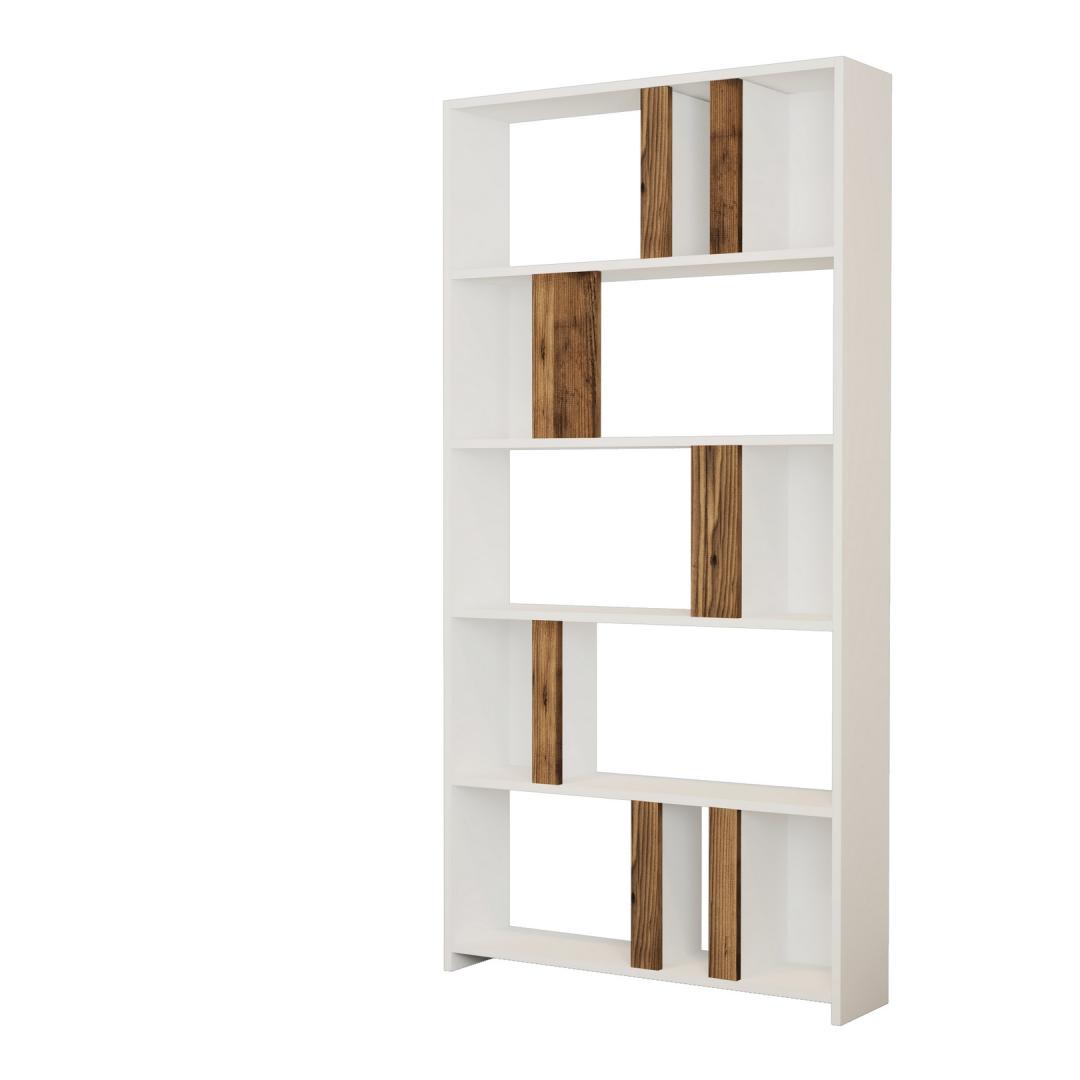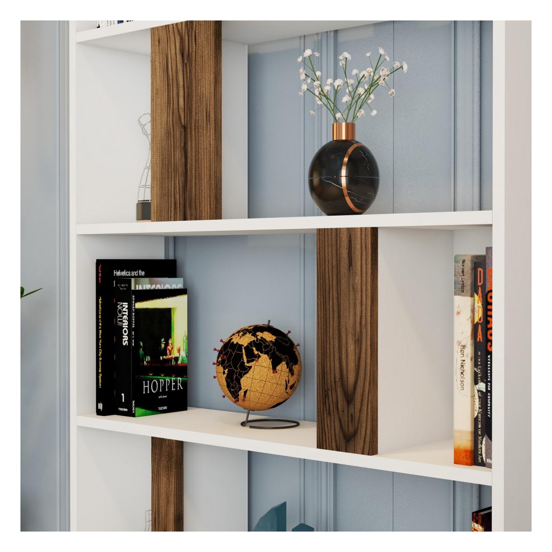 Crafted with 100% melamine coated particle board, our bookshelf is not only durable but also exudes an air of sophistication. The combination of white and walnut colors adds a touch of elegance to any room, making it a versatile piece that seamlessly blends with various interior styles.