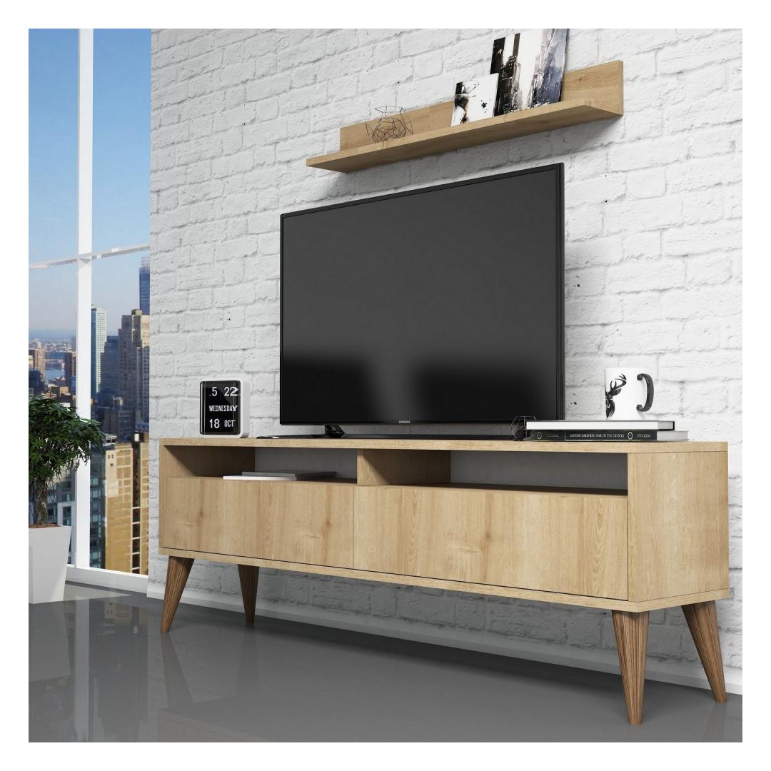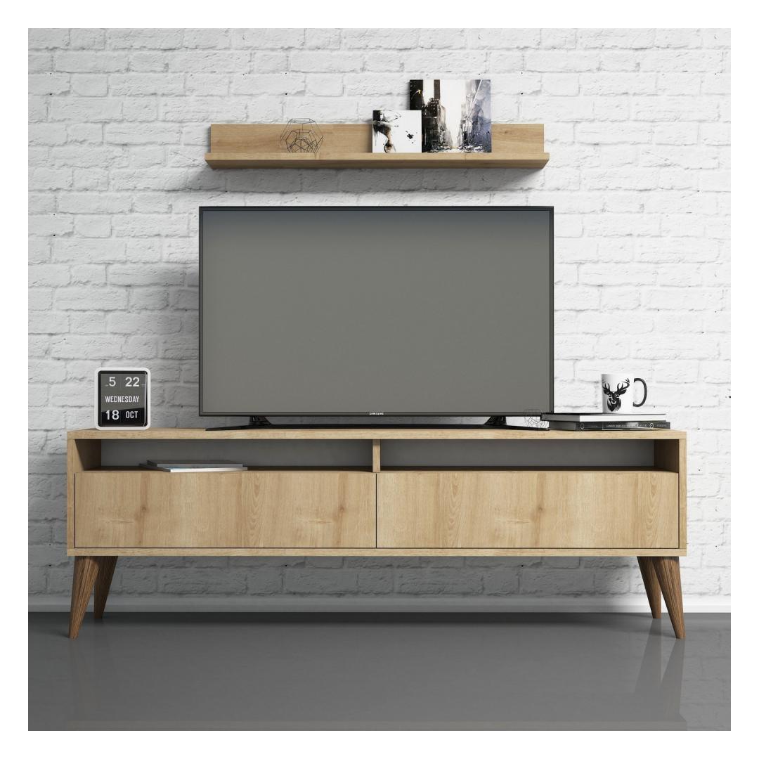 Upgrade your living room with our stunning TV unit that combines functionality and style. Crafted with 100% melamine coated particle board, this unit is built to last and withstand everyday wear and tear. Its solid color and modern design add a touch of novelty to any space, making it the perfect addition to your home.