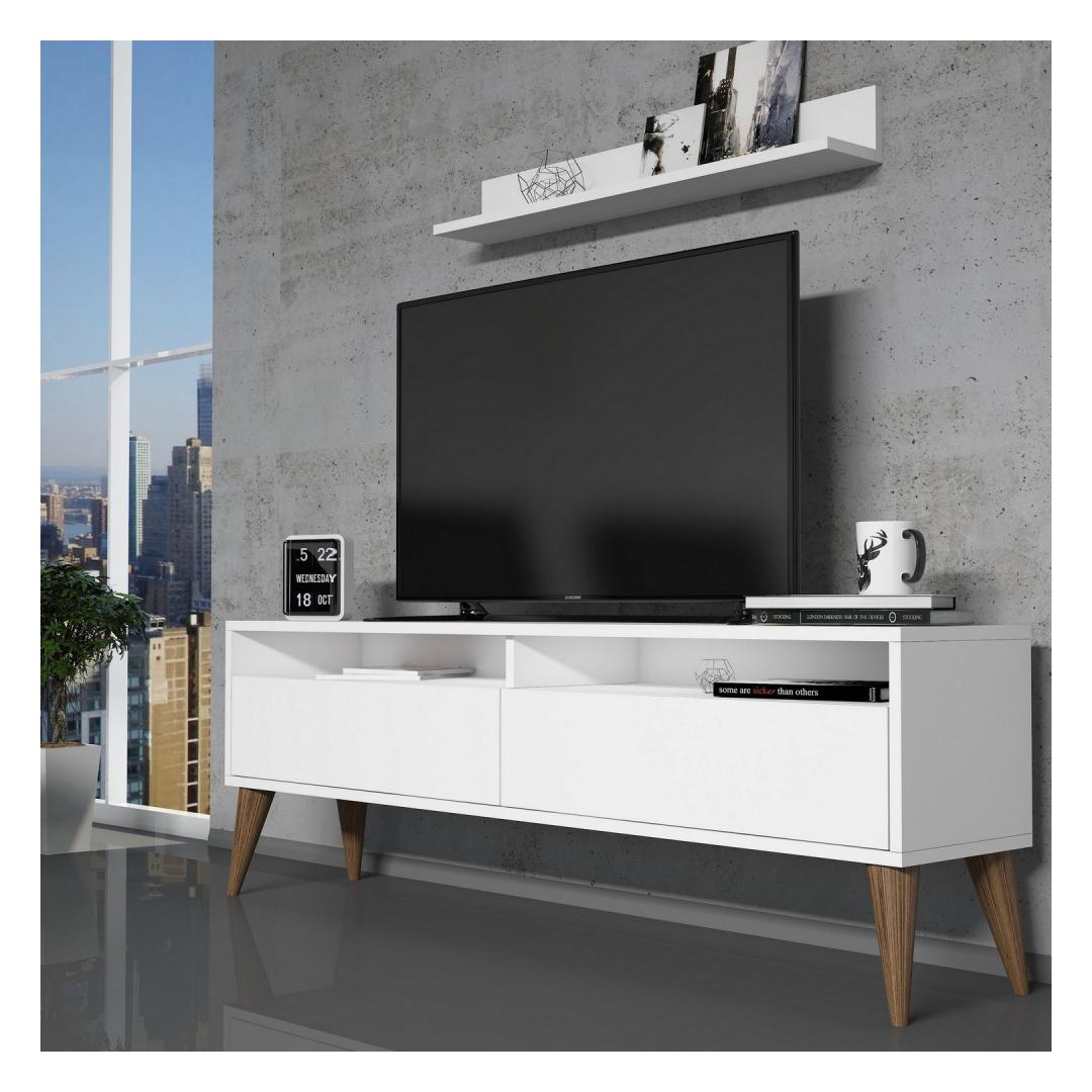Upgrade your living room with our stunning TV unit that combines functionality and style. Crafted with 100% melamine coated particle board, this TV unit is built to last and withstand daily wear and tear. Its solid color and modern design will instantly elevate the look of your space, adding a touch of novelty and sophistication.