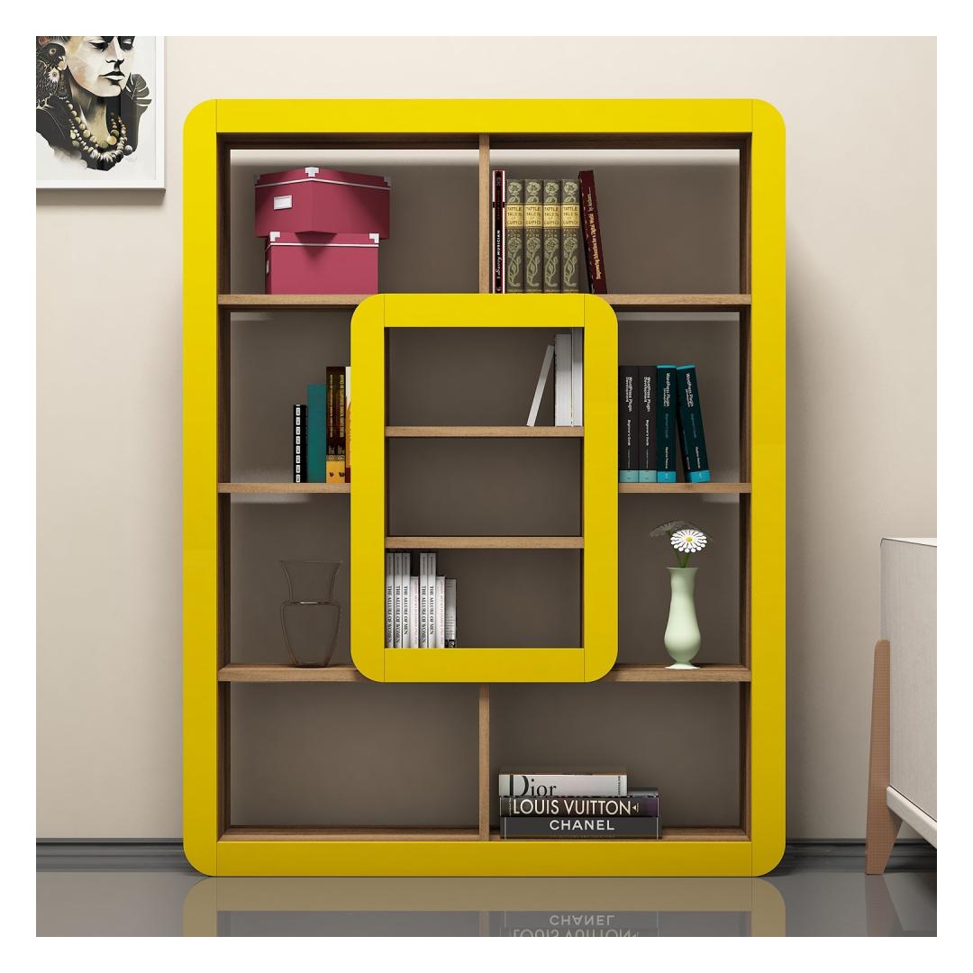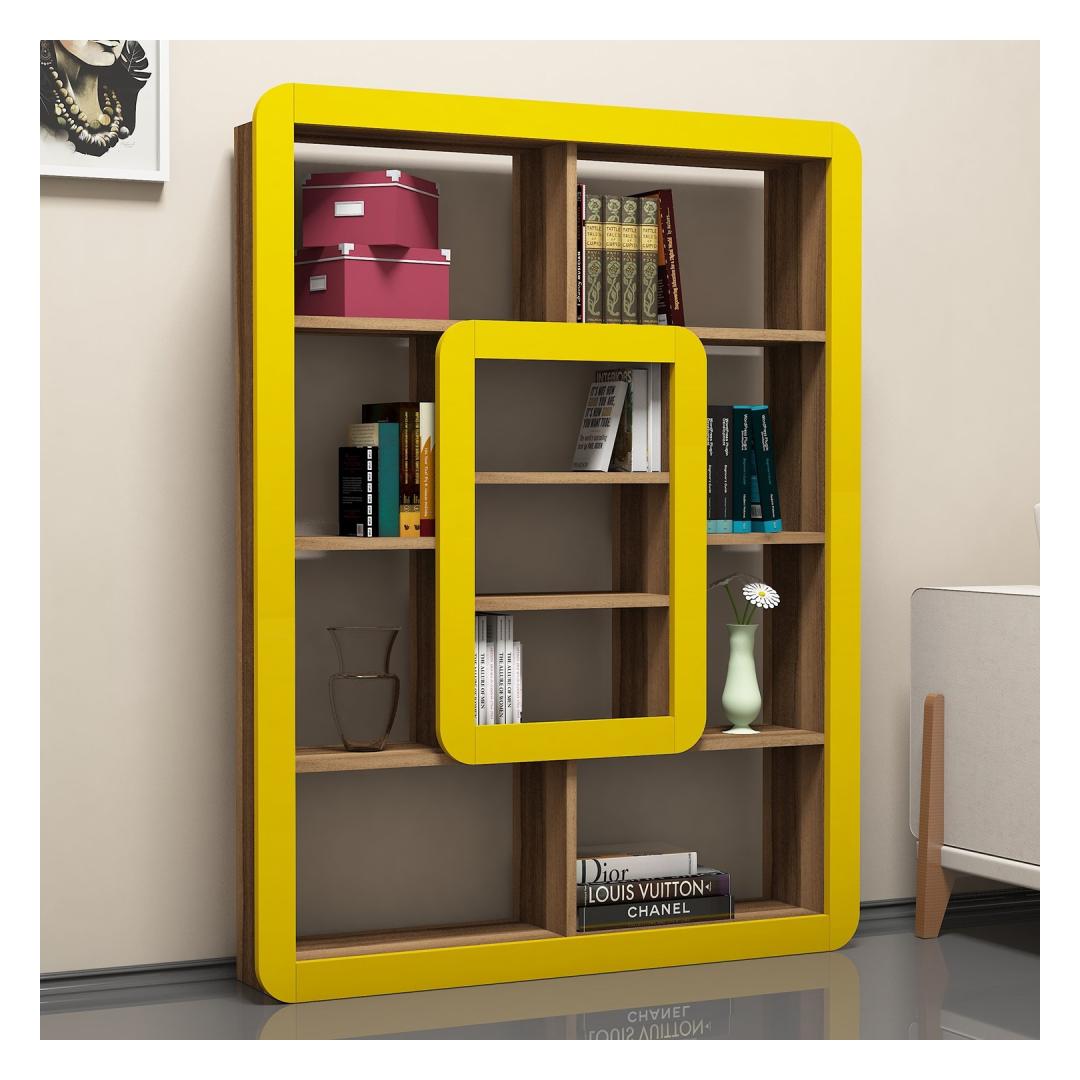 With its walnut and yellow color combination, this bookshelf effortlessly blends into any interior style. Whether you have a modern, eclectic, or bohemian-inspired home, this piece will seamlessly integrate and become the focal point of your room.