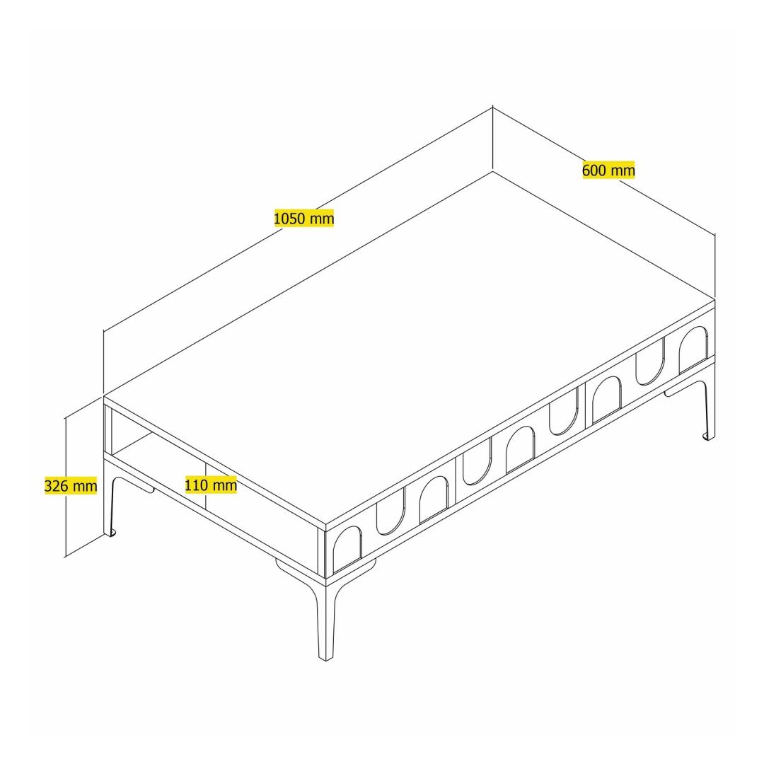 Constructed from 18mm thick melamine coated particle board, this coffee table is built to last. The durable materials ensure that it will withstand daily use and maintain its beauty for years to come. The spacious dimensions of 105cm width, 32.6cm height, and 60cm depth provide ample surface area for all your needs.