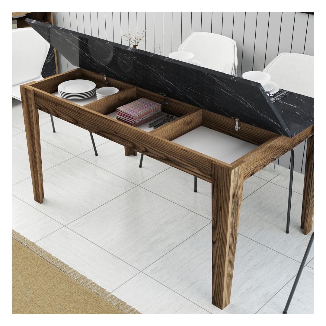 Our dining table is not just a beautiful addition to your home, but also a practical one. It features a storage area with a height of 9cm, providing you with ample space to store your dining essentials, keeping your dining area clutter-free and organized.