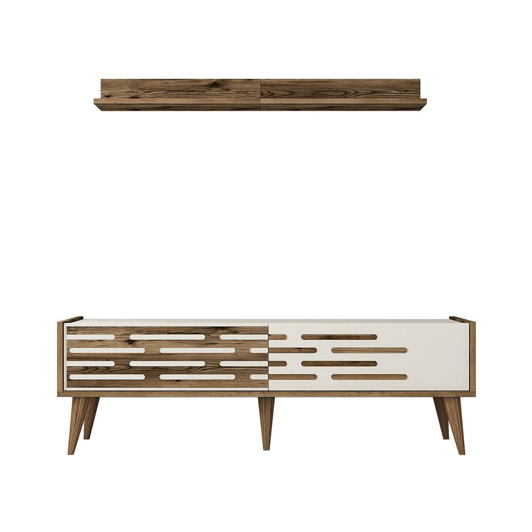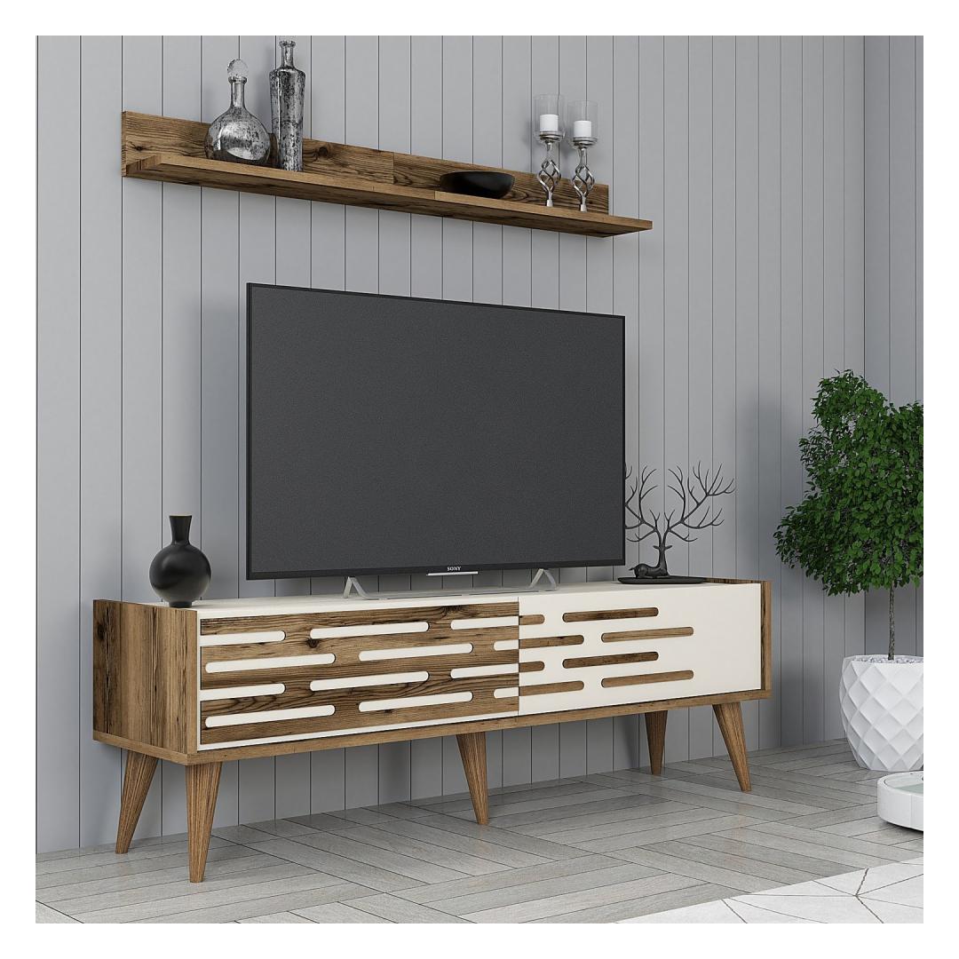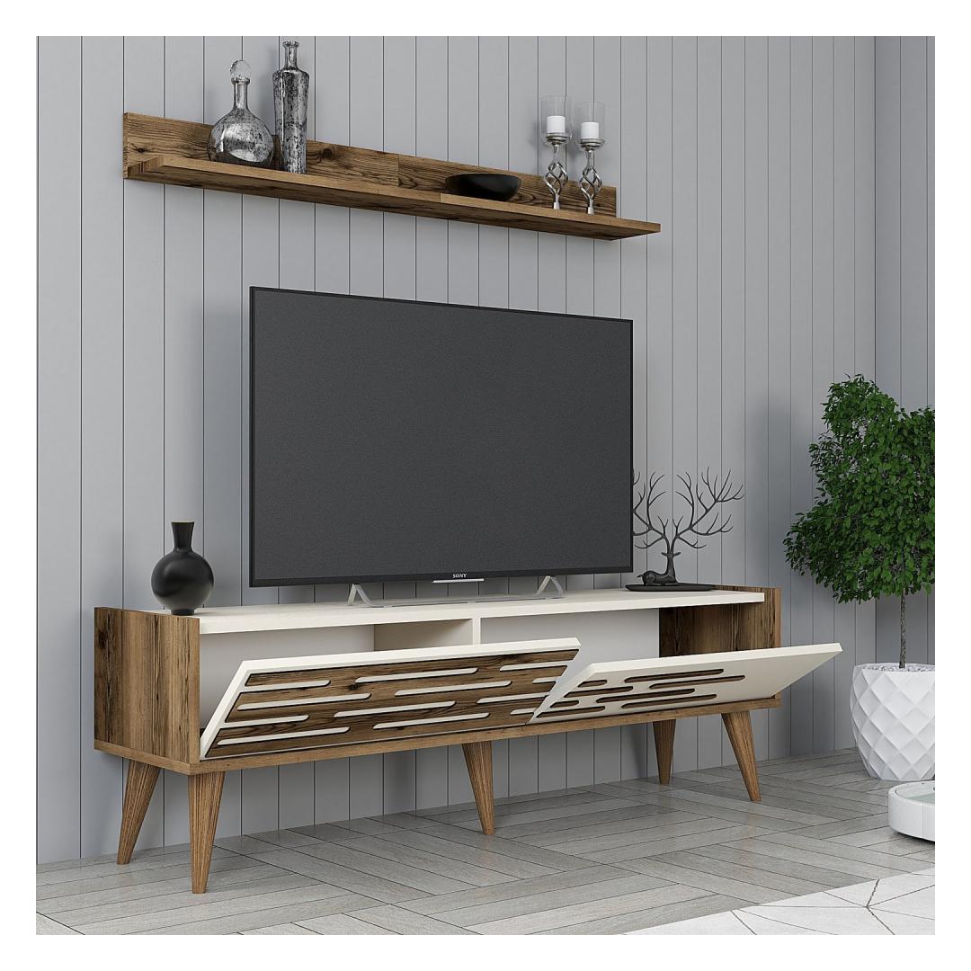 Crafted from 100% melamine coated particle board, our TV unit is not only durable but also exudes a sense of elegance. The walnut and cream color combination adds a touch of sophistication to any room, instantly transforming it into a stylish haven.