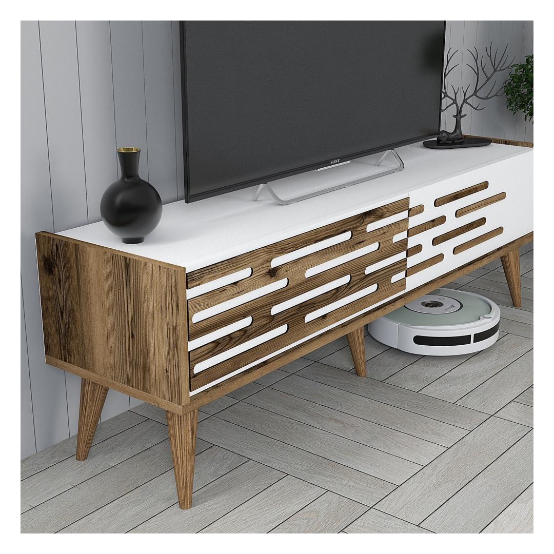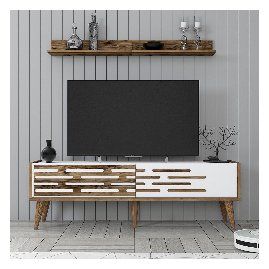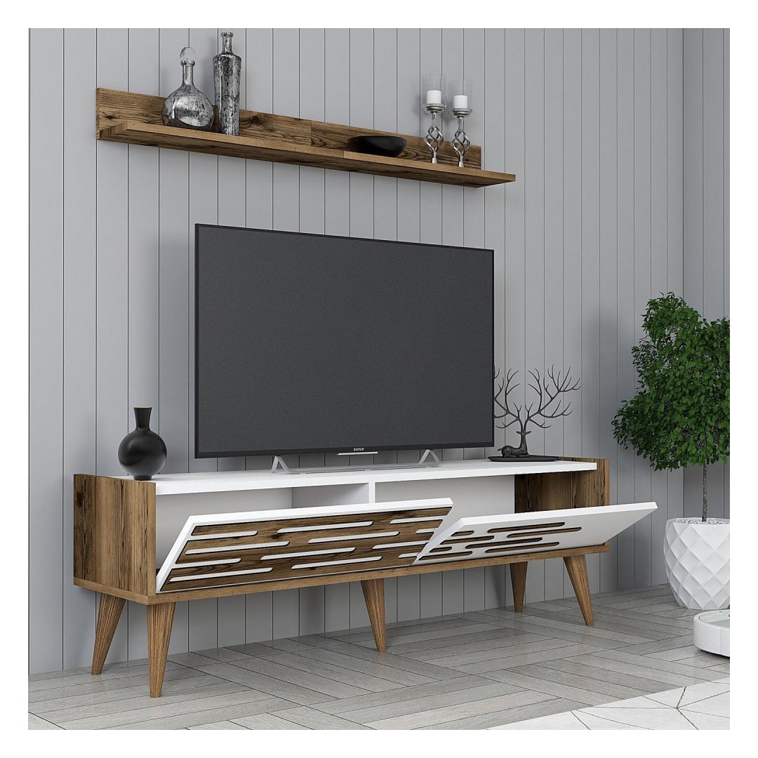 Featuring a combination of walnut and white colors, our TV unit adds a touch of elegance to any living room decor. The sleek and modern design effortlessly blends with both contemporary and traditional styles, making it a versatile choice for any home.