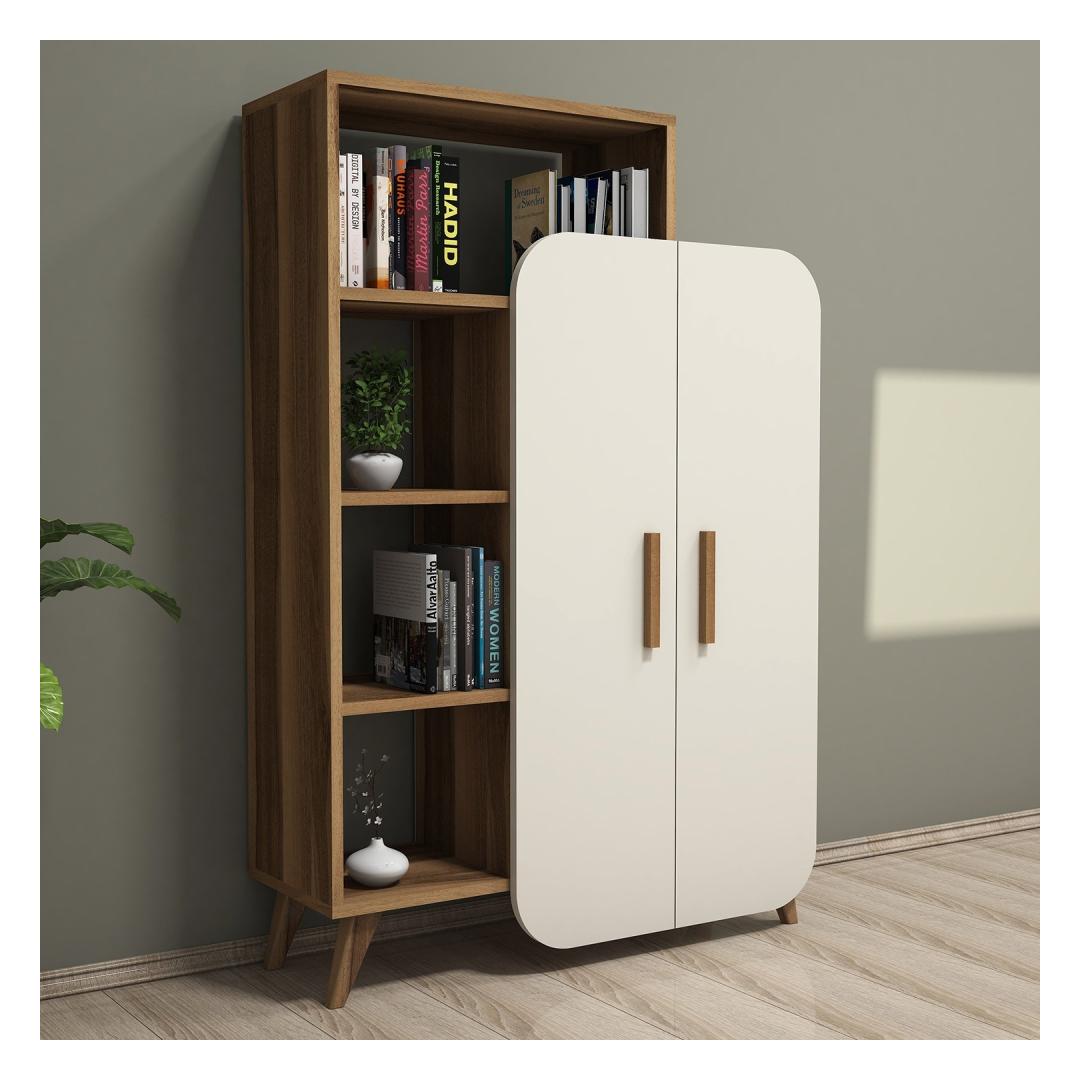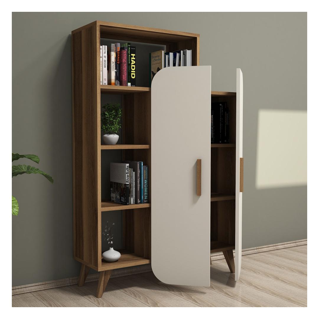 Are you tired of cluttered spaces and disorganized rooms? Look no further than our stunning Walnut and Cream Bookshelf! This modern and innovative piece will not only add a touch of elegance to your home but also provide you with ample storage space for all your favorite books and decorative items.