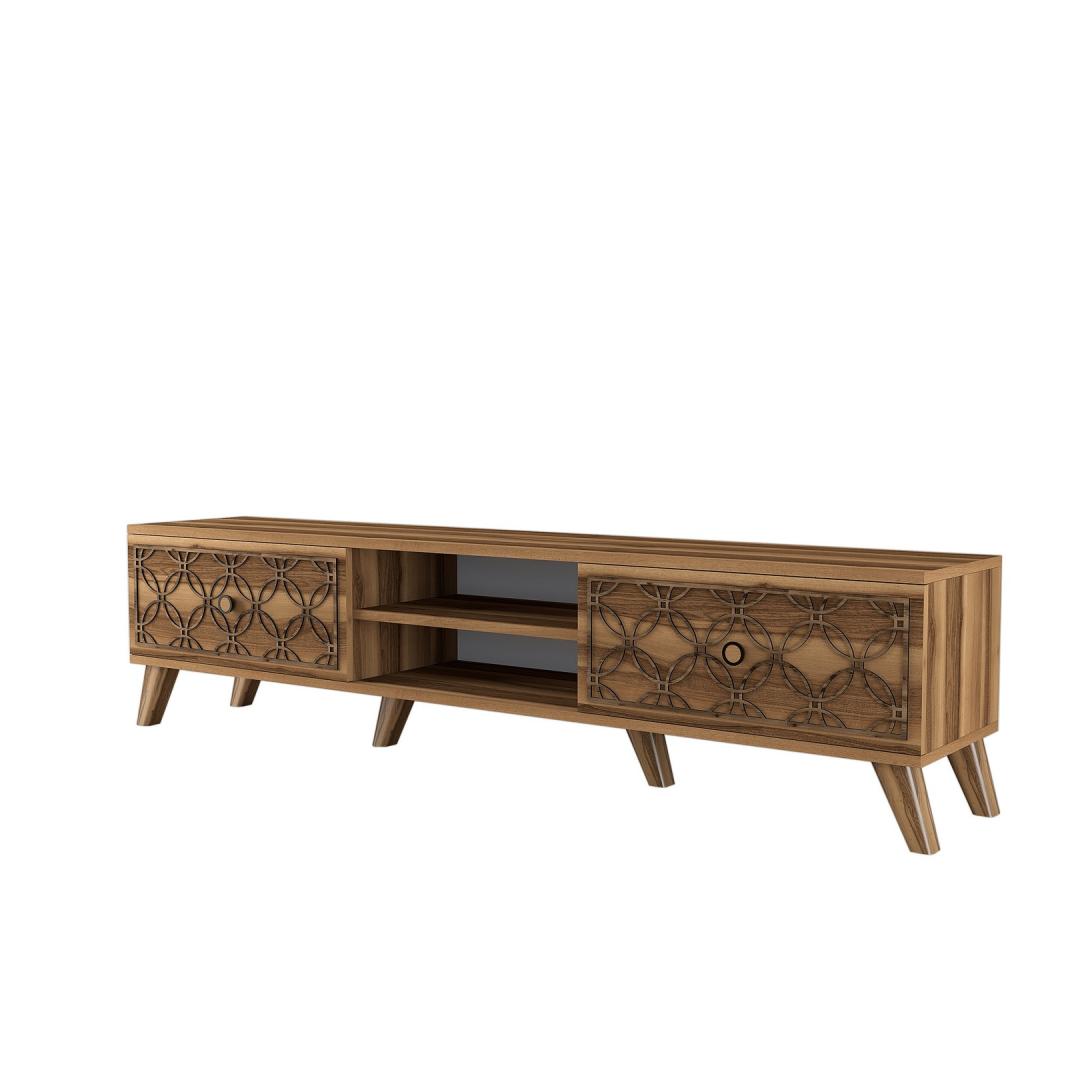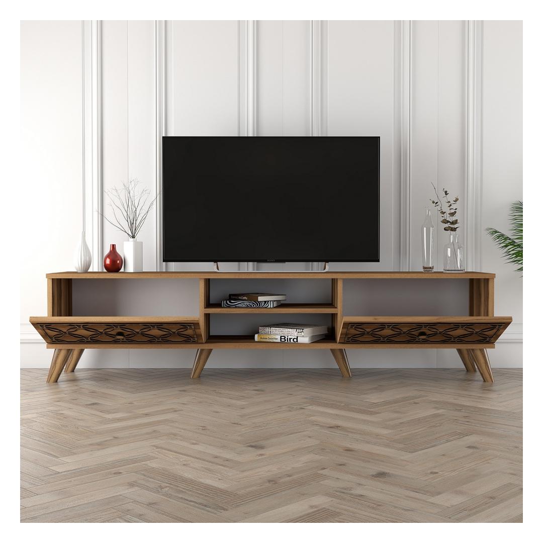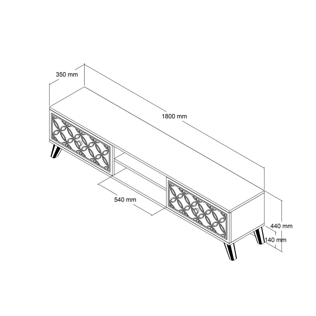 Our TV stand is made from 100% melamine coated particle board, ensuring durability and longevity. The 18mm thickness and 4mm CNC relief add a touch of elegance to its design, making it a standout piece in any room.