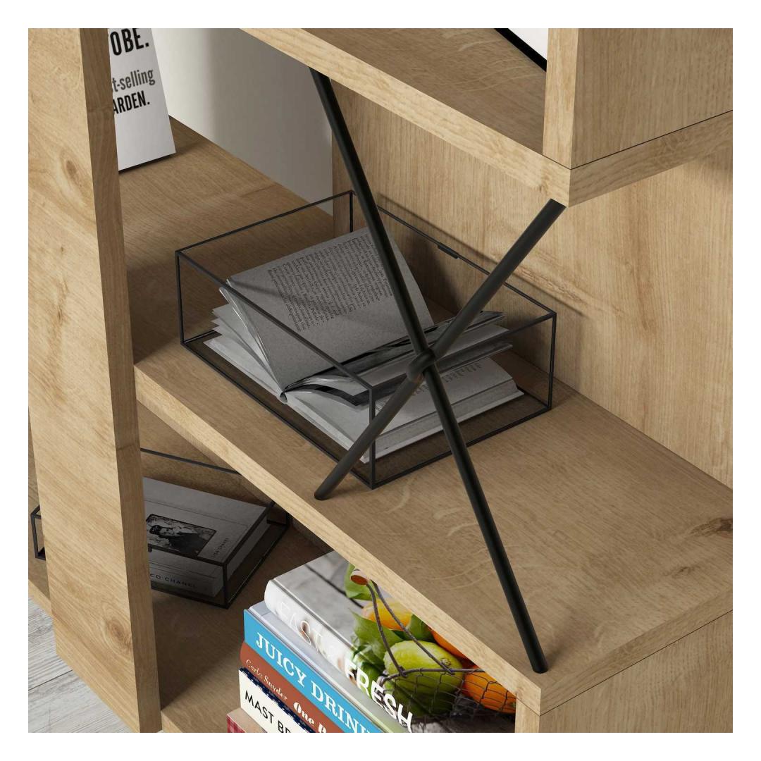 The bookshelf features a stunning oak finish that adds warmth and character to any room. The rich and natural tones of the oak color(s) create a welcoming ambiance, making it the perfect addition to your living room, bedroom, or home office.