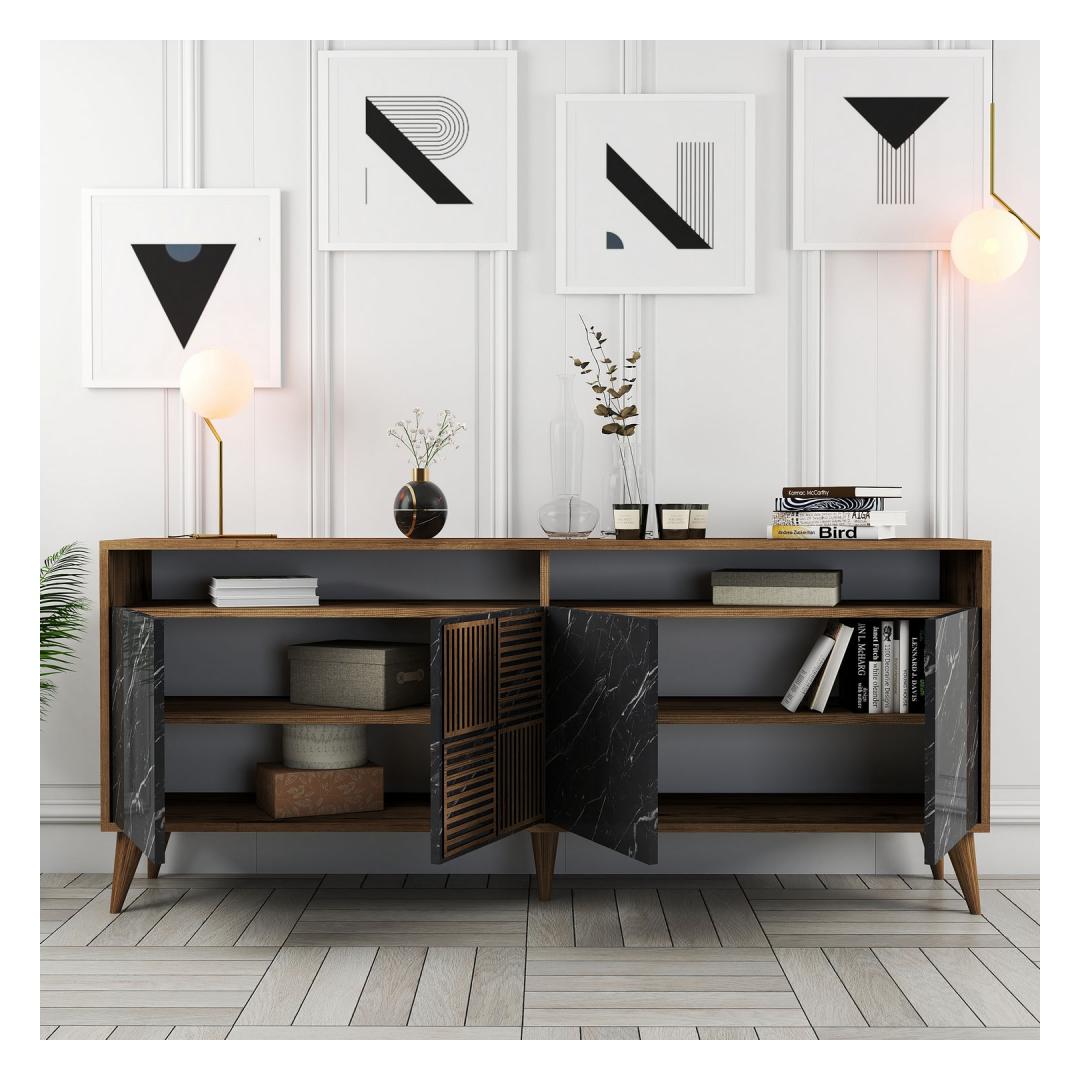 The console features a beautiful combination of walnut and black colors, creating a striking contrast that adds a touch of sophistication to any room. The solid color in anthracite adds a modern twist, making it a perfect fit for contemporary interiors.