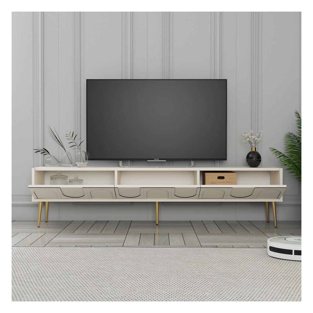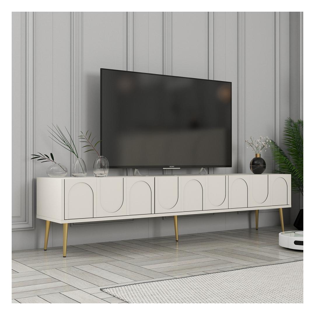 Transform your living room into a luxurious and elegant space with our stunning TV unit. The combination of cream and gold colors exudes sophistication and style, making it the perfect centerpiece for your entertainment area.