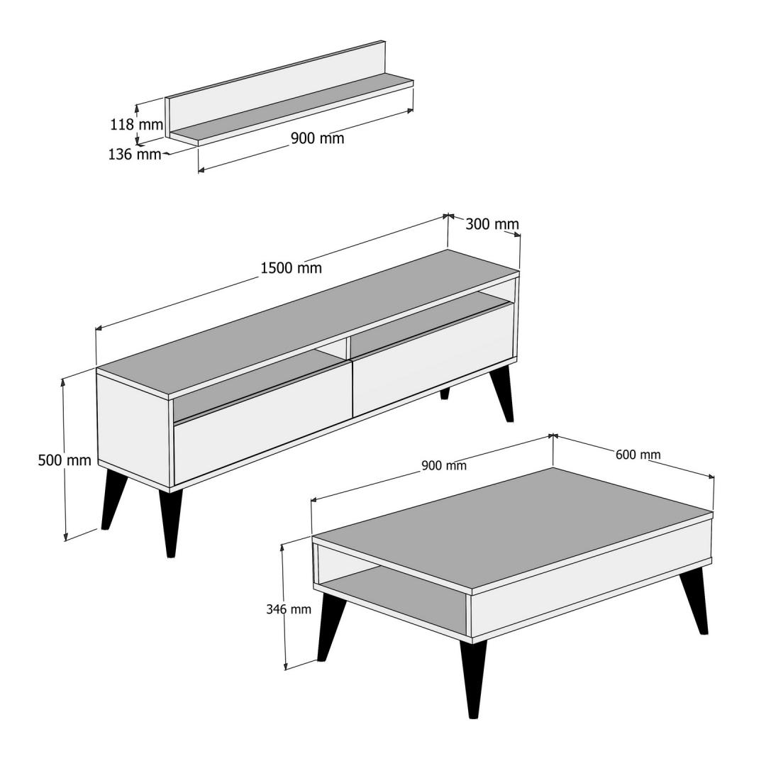 • TV Stand Size: Width: 150 cm, Height: 50 cm, Depth: 30 cm