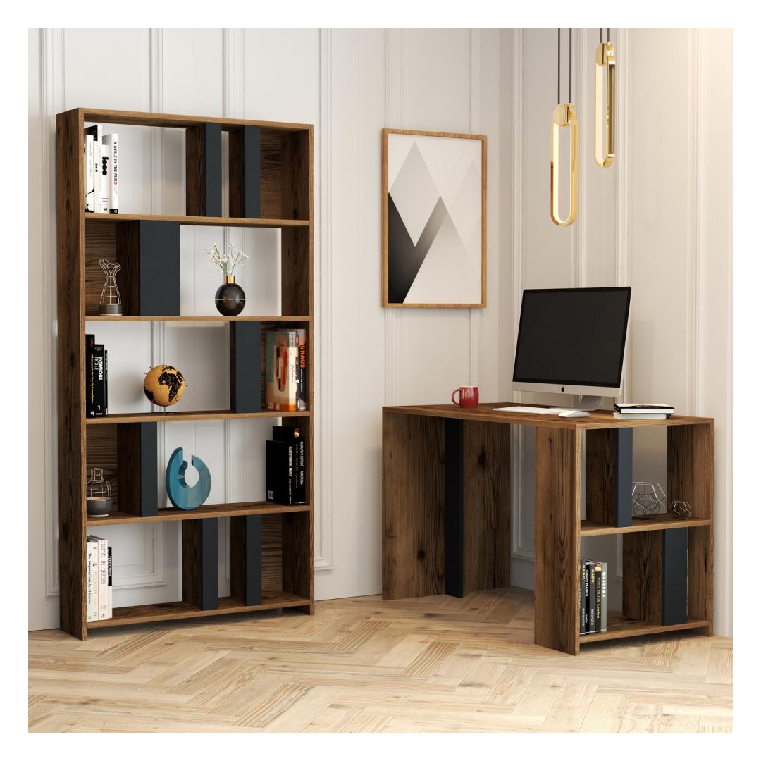 With its sleek and contemporary design, our Study Desk & Bookshelf is the perfect choice for those who seek a stylish yet functional workspace. The combination of Walnut and Anthracite colors adds a touch of sophistication to any room, making it a statement piece that complements any interior decor.