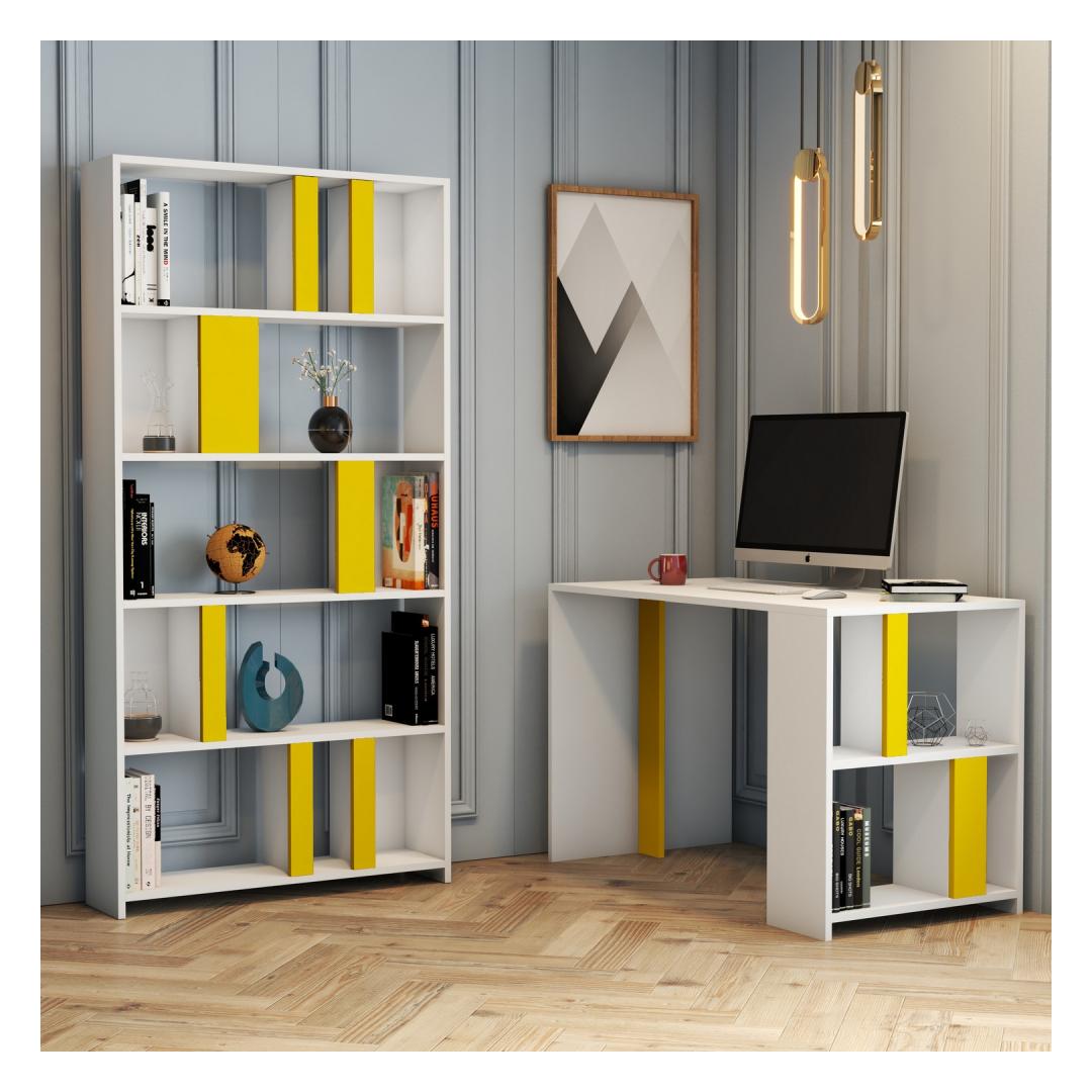 The combination of white and yellow colors adds a touch of vibrancy to your study space, creating a cheerful and inviting atmosphere. The sleek design and clean lines of this piece make it a versatile addition to any room, whether it's a cozy home office or a trendy studio apartment.
