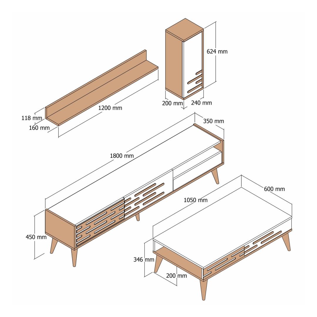 - TV Stand Size: Width: 180cm, Height: 35cm, Depth: 45cm