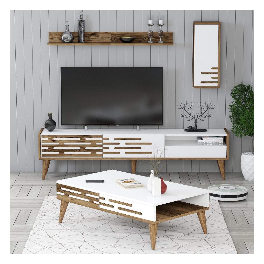 Create a warm and inviting atmosphere with the elegant combination of walnut and white colors. The sleek design of this furniture set will instantly upgrade the look of your living room, making it the perfect place to relax and entertain.