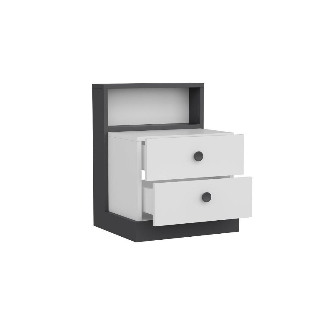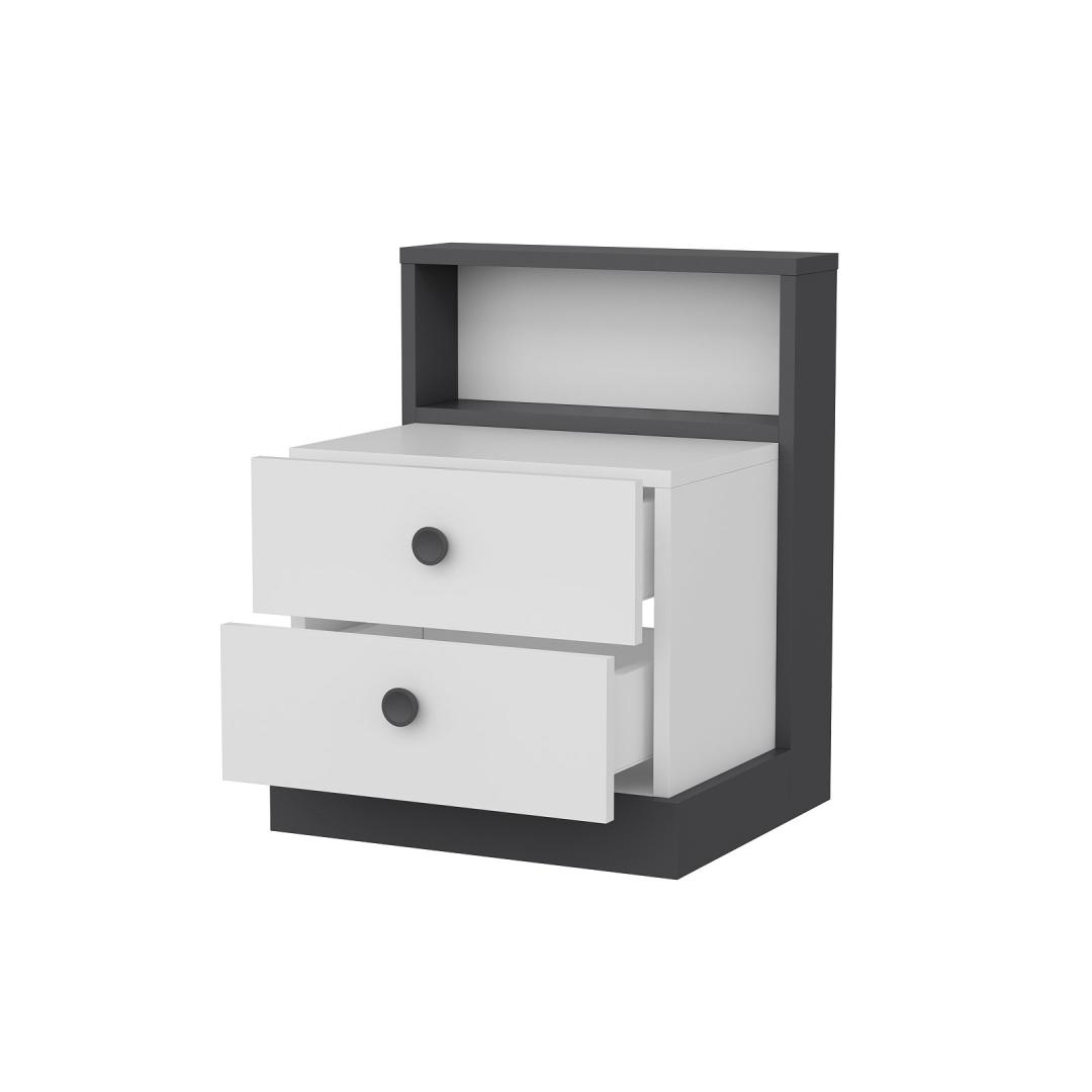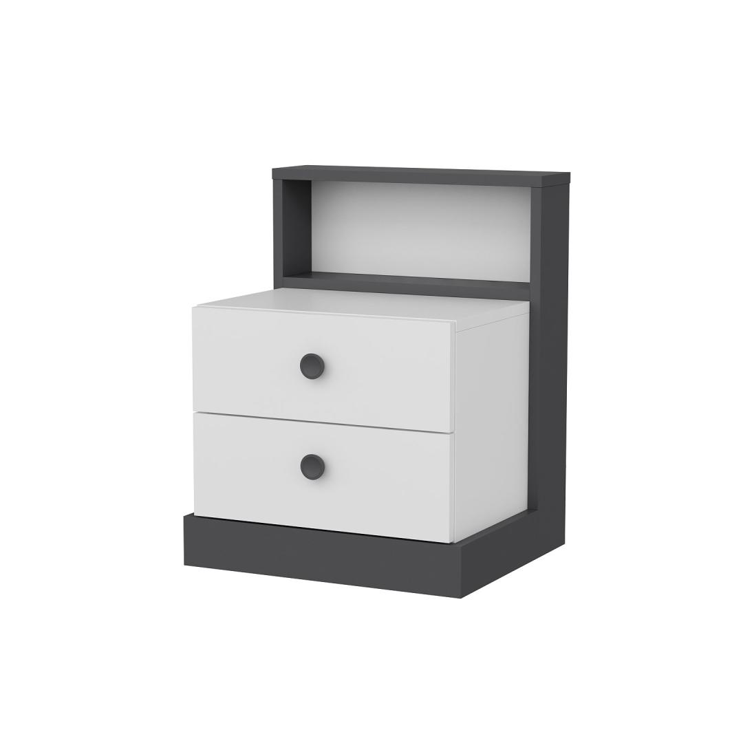 The Scandinavian concept of simplicity and minimalism is beautifully reflected in the design of our nightstand. The combination of anthracite and white colors creates a harmonious contrast, adding a touch of sophistication to your bedroom decor.