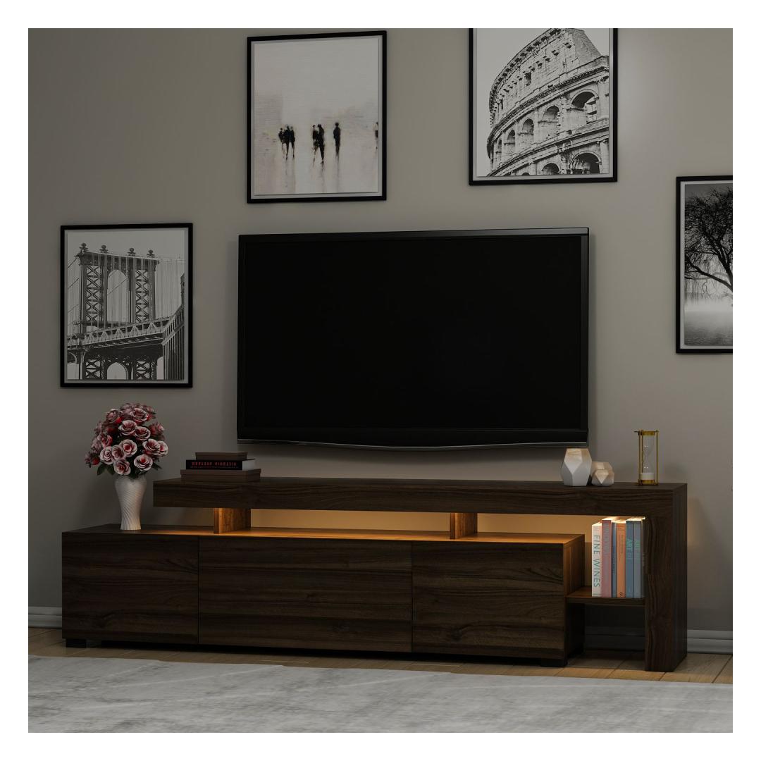 Equipped with LED lights, our TV stand adds a mesmerizing glow to your entertainment area. The subtle lighting enhances the visual appeal of your TV and creates a captivating ambiance that immerses you in your favorite movies and shows.