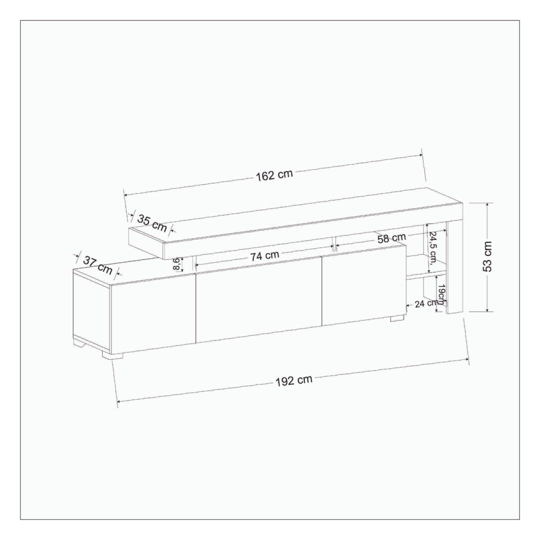 TV Shelf Size: Width: 162 cm Height: 53 cm Depth: 35 cm