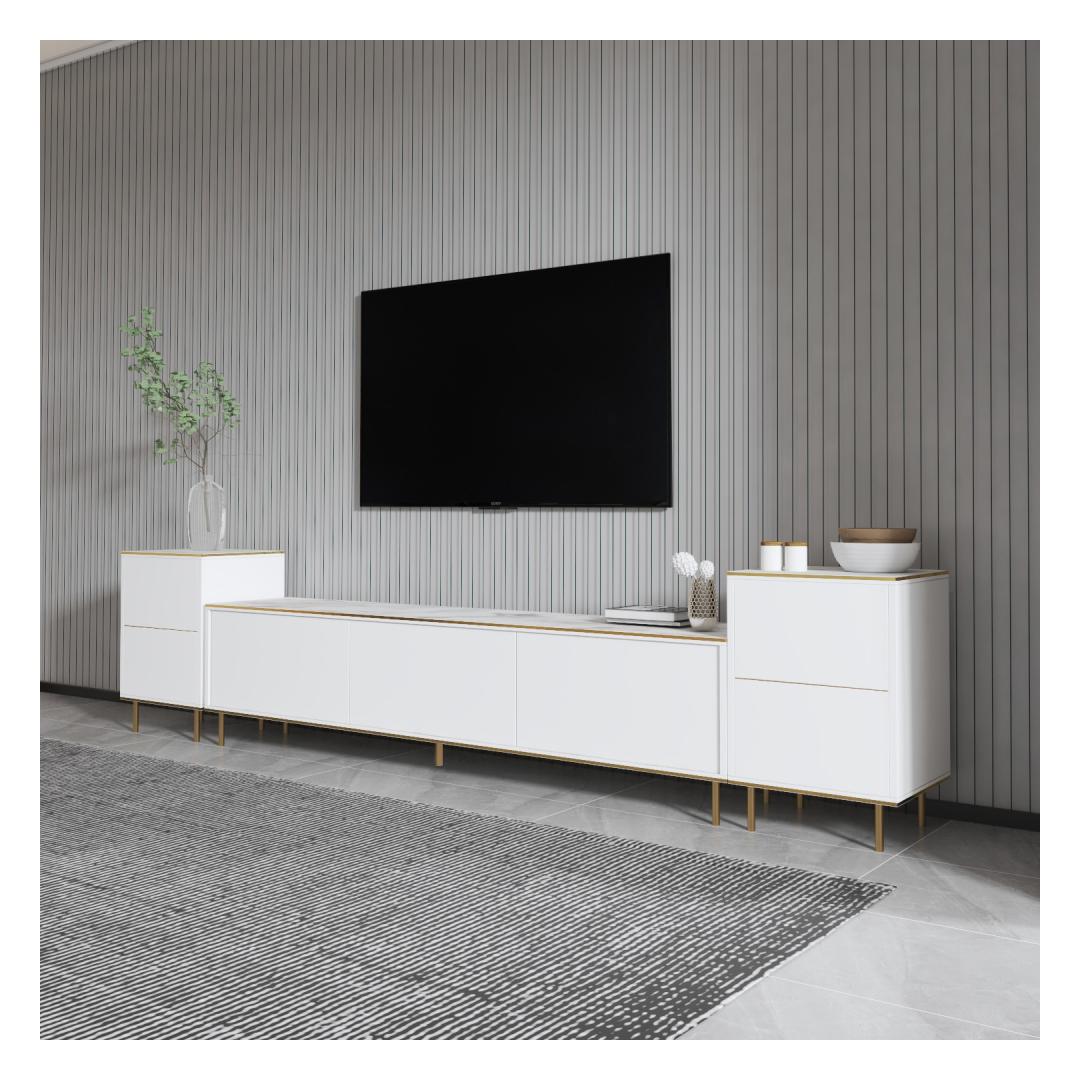 Add a touch of glamour to your home with this exquisite TV unit. The sleek design and modern color palette will instantly elevate your home decor, creating a chic and stylish atmosphere that you and your guests will love.