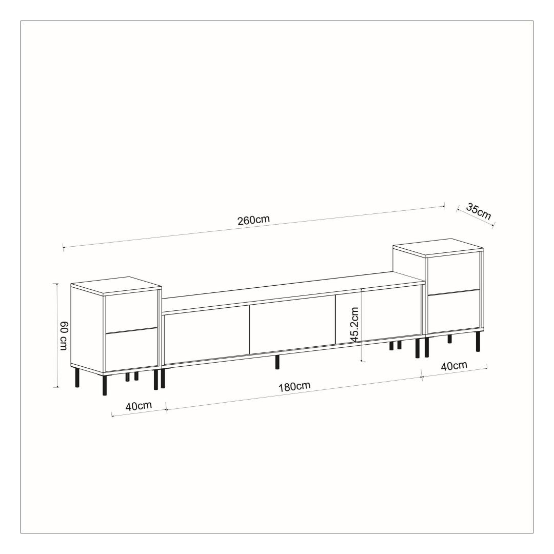 Crafted from 100% melamine coated particle board, this TV unit is not only stylish but also durable and sturdy. The 18mm thickness ensures long-lasting quality, so you can enjoy this piece for years to come.