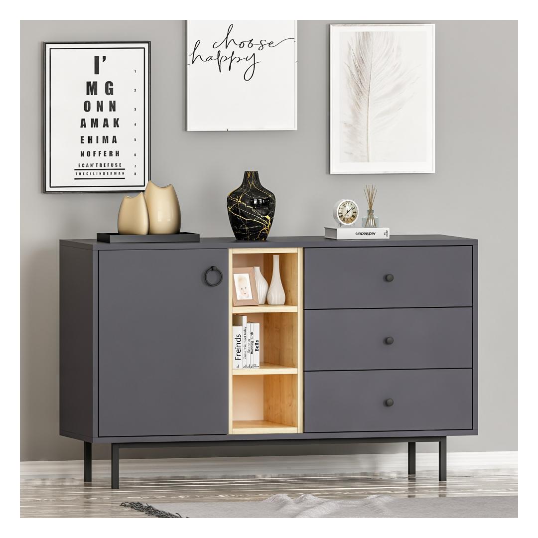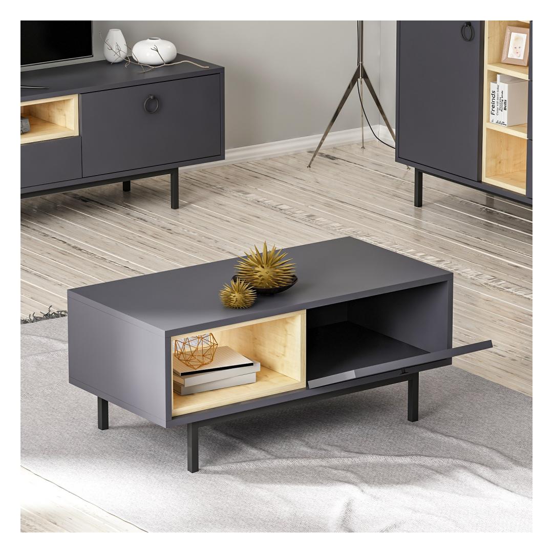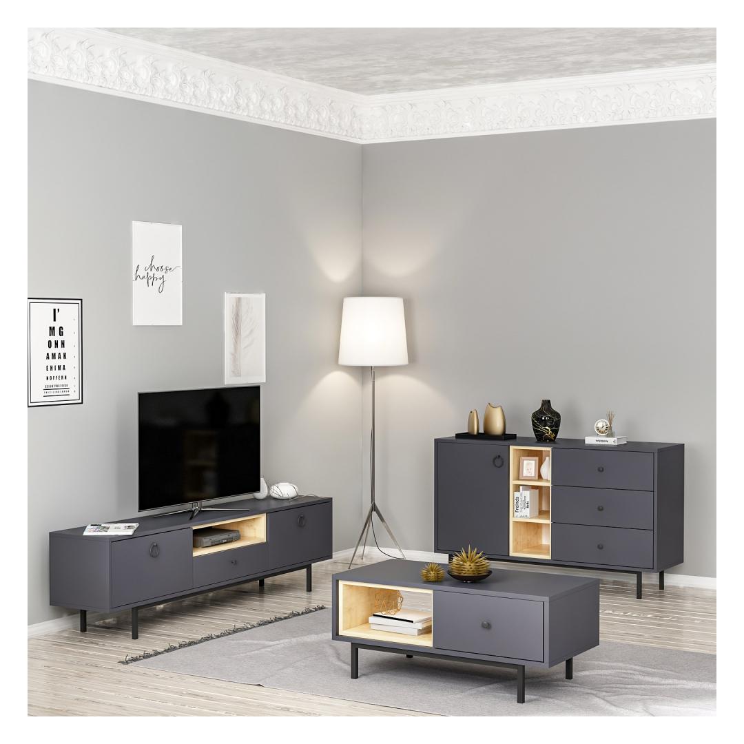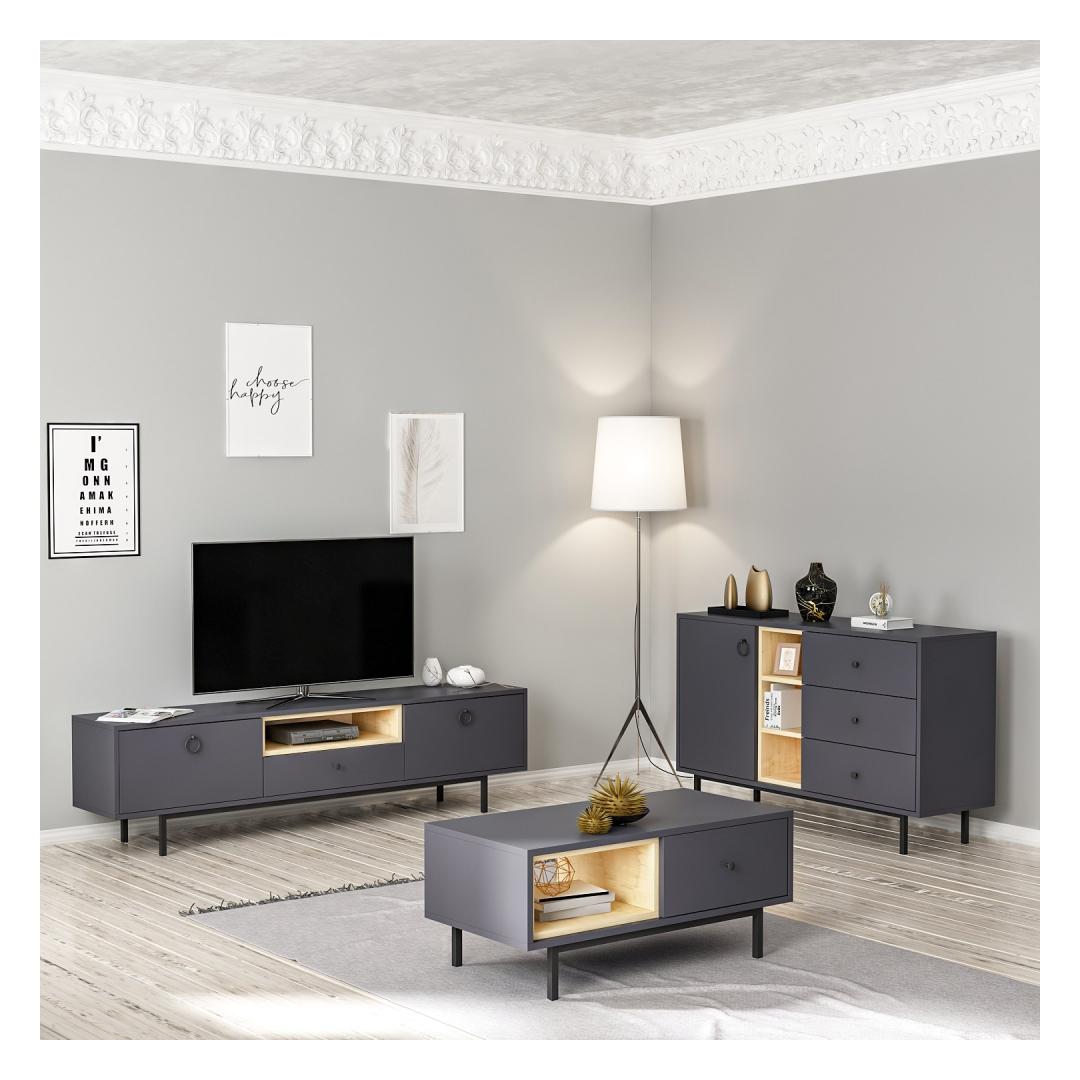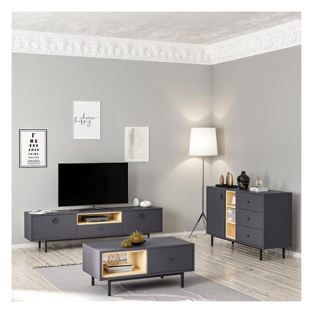 The sleek TV stand, coffee table, and console in this set are designed to elevate the aesthetic of your living room. The Anthracite color adds a touch of sophistication to any decor, while the clean lines and minimalist design create a contemporary look that is sure to impress.