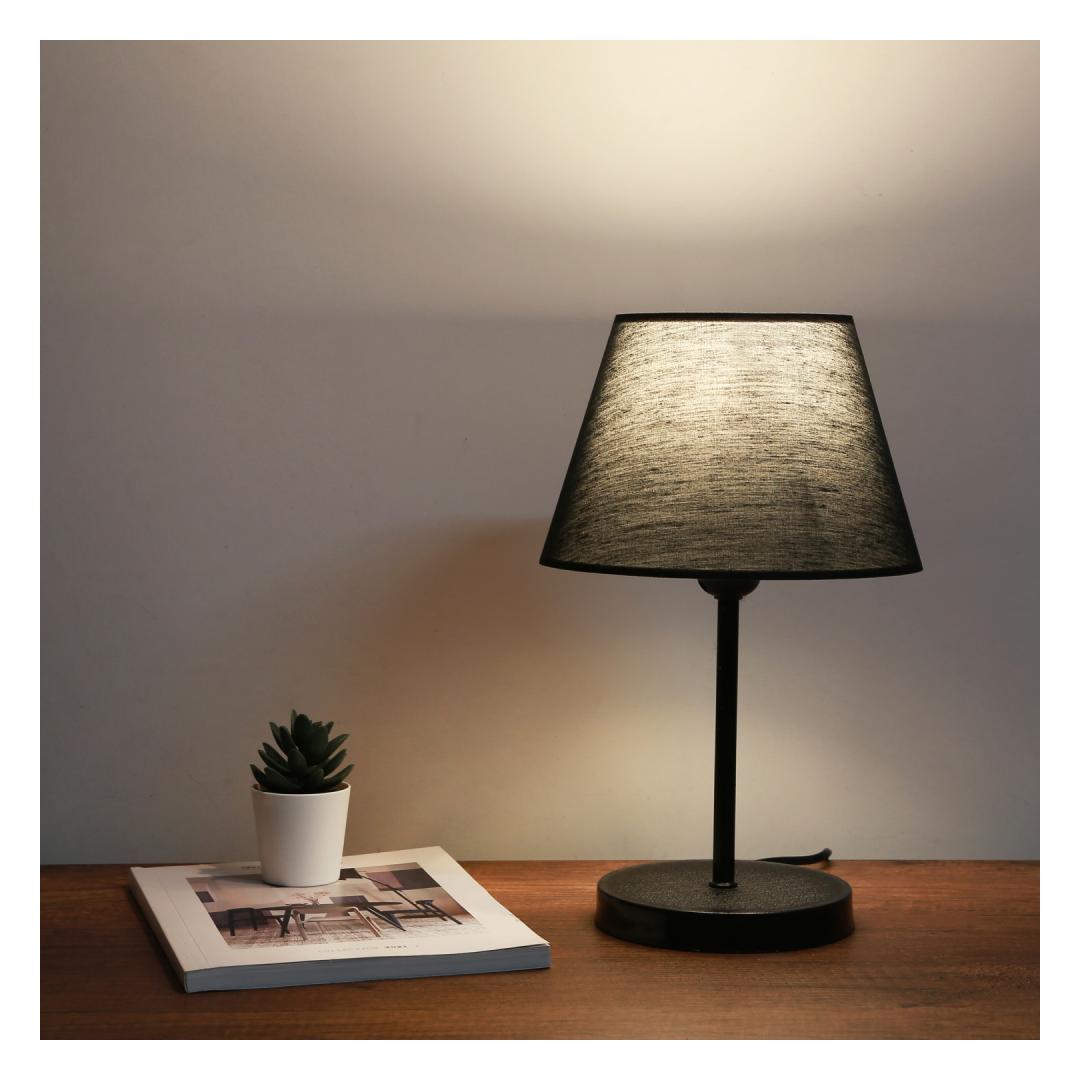 Illuminate your space with this stunning and modern Table Lamp. The sleek black metal design adds a touch of elegance to any room, while the fabric cap softens the light for a warm and inviting ambiance. Whether you're reading a book in bed or working at your desk, this lamp is the perfect addition to your home decor.
