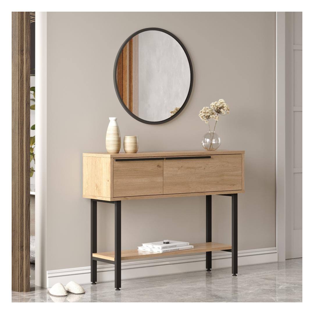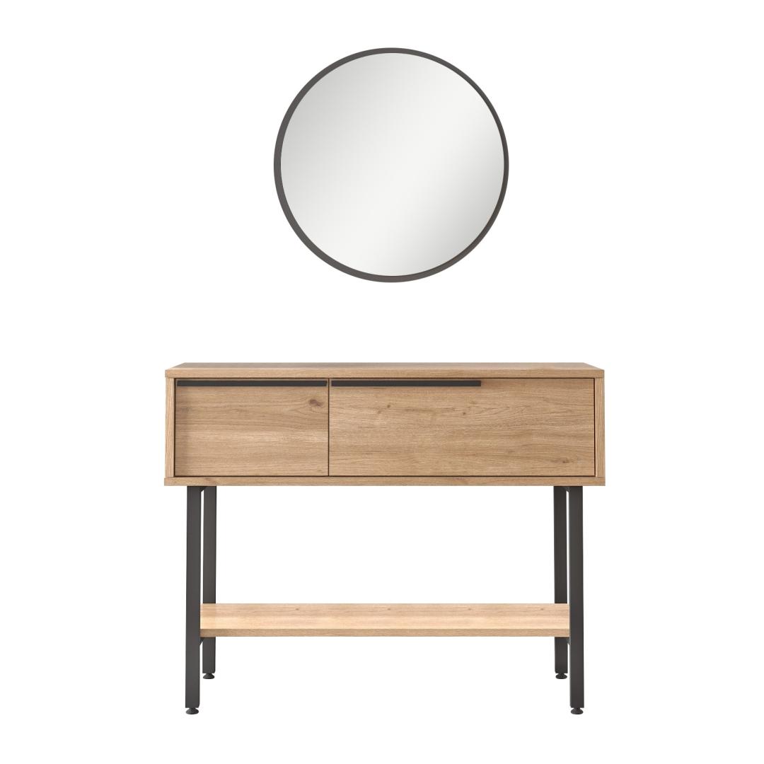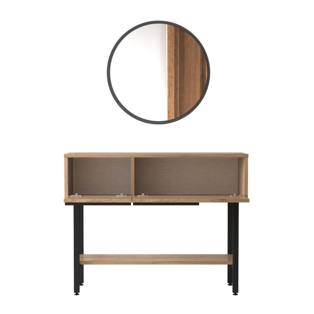 With its generous dimensions of 100cm width, 76cm height, and 29.5cm depth, this sideboard offers ample storage space to keep your belongings organized and within easy reach. The mirror, measuring 60cm in width, 60cm in height, and 1.8cm in depth, adds a touch of glamour and functionality to the piece.