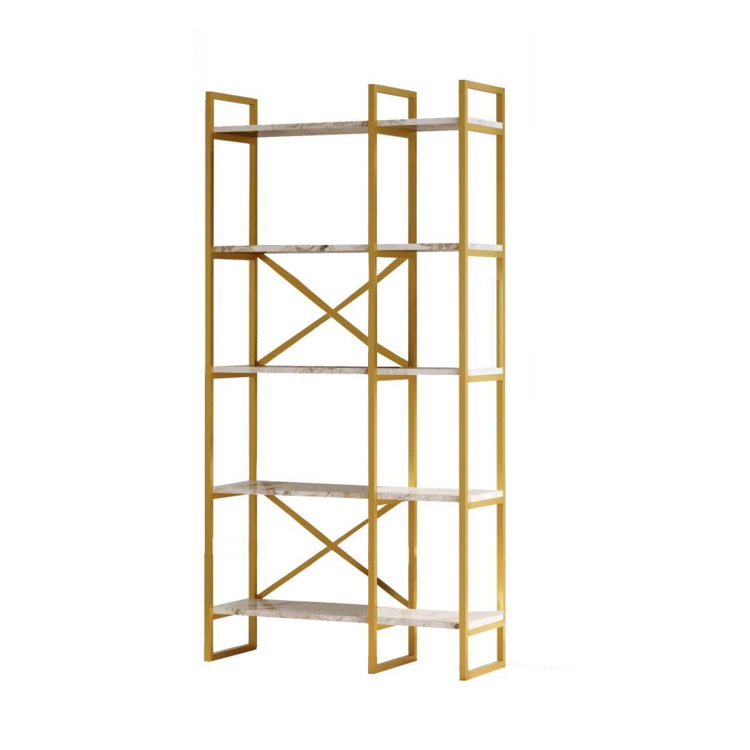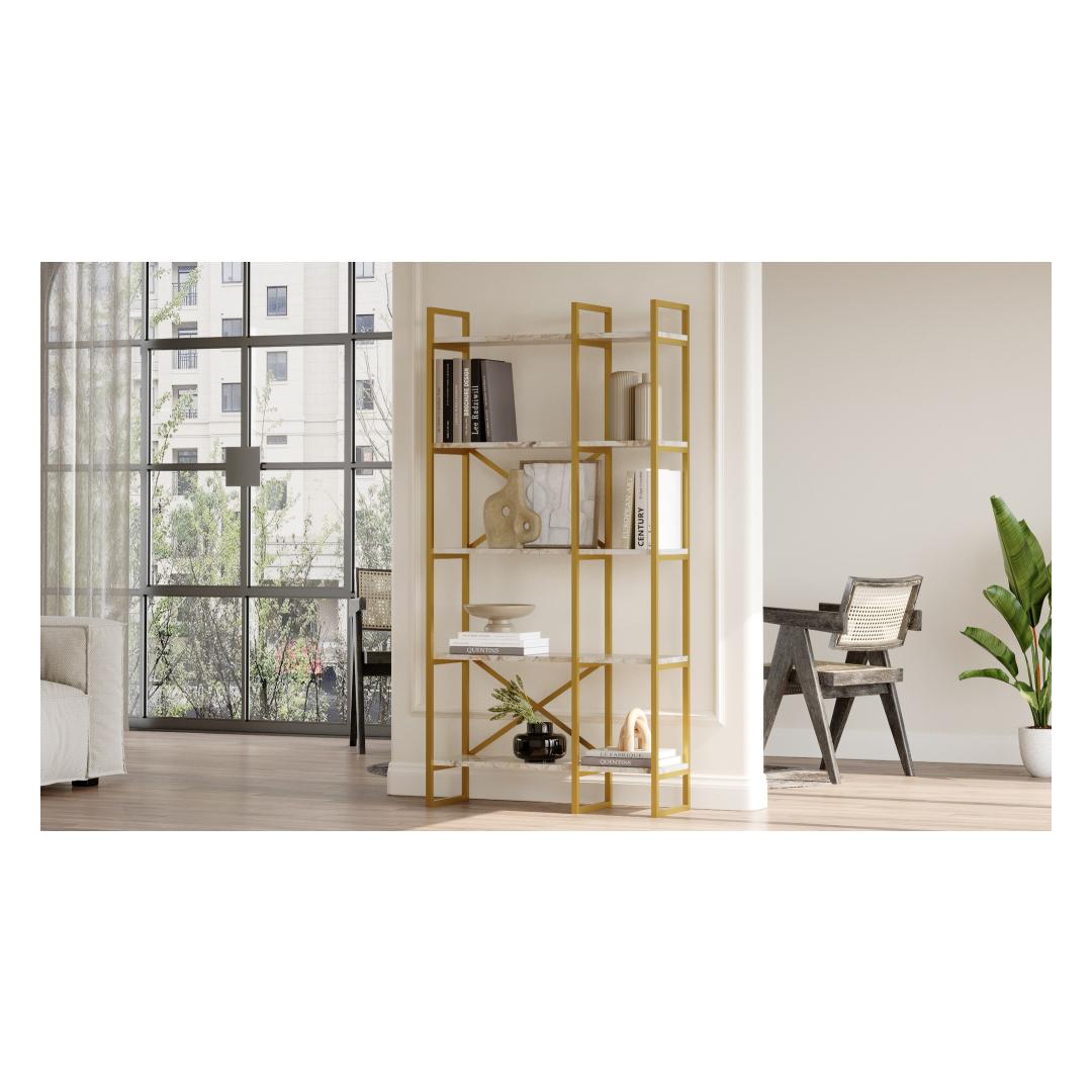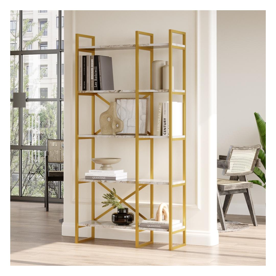 The combination of white marble and gold colors creates a timeless aesthetic that effortlessly complements any interior design. The sleek and sophisticated design of this bookshelf will elevate the ambiance of your space, making it a focal point that draws admiration from all who enter.