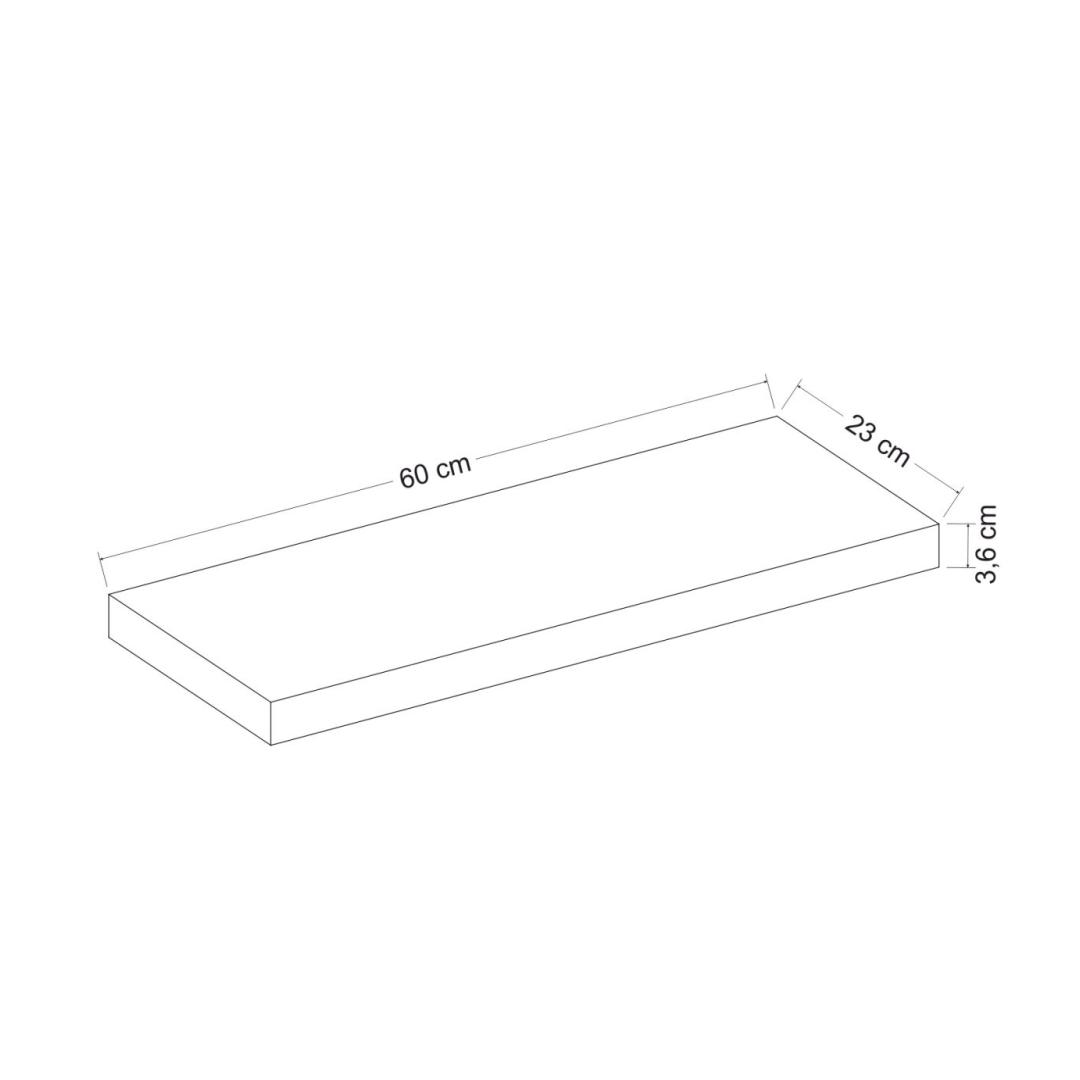 Width: 60 cm Height: 3,6 cm Depth: 23 cm