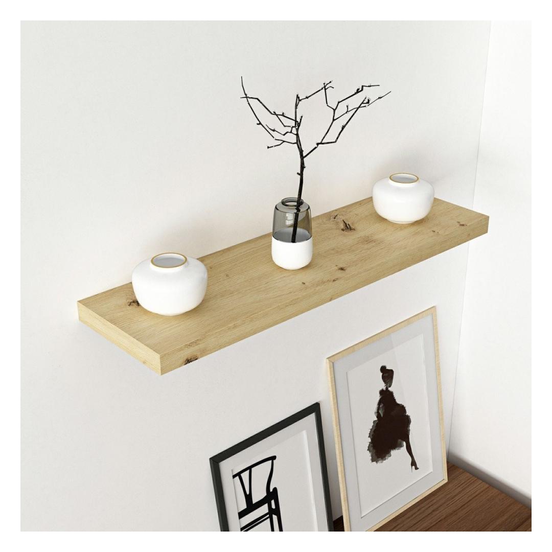 Made from 100% melamine coated particle board, this wall shelf is built to last. The 18 mm thickness ensures sturdiness and stability, allowing you to display your cherished items with confidence. Rest assured, this shelf is designed to withstand the test of time, providing you with years of reliable use.