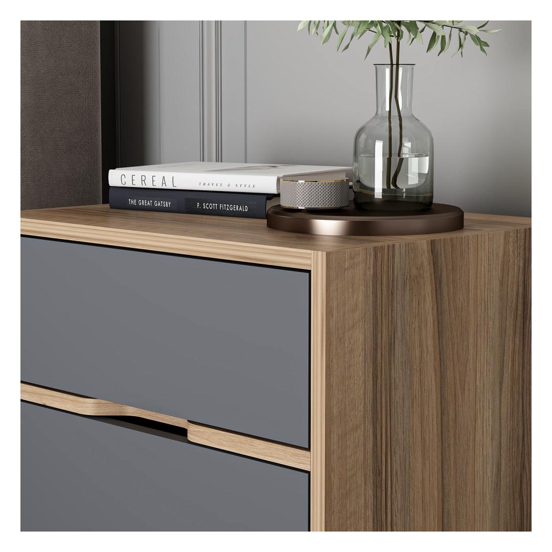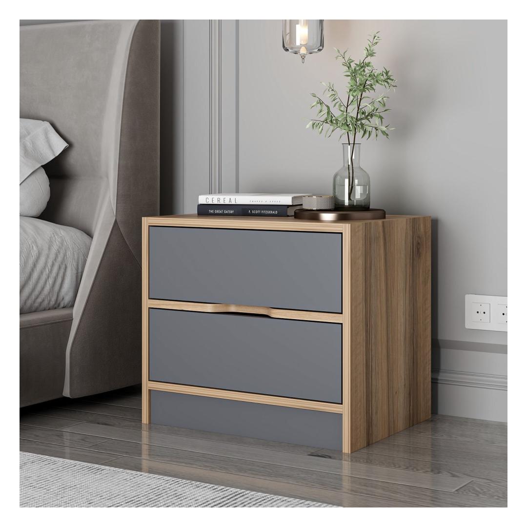 The combination of walnut and anthracite colors gives this nightstand a modern and sophisticated look. The sleek and minimalist design effortlessly blends with any bedroom decor, adding a touch of class to your personal space.