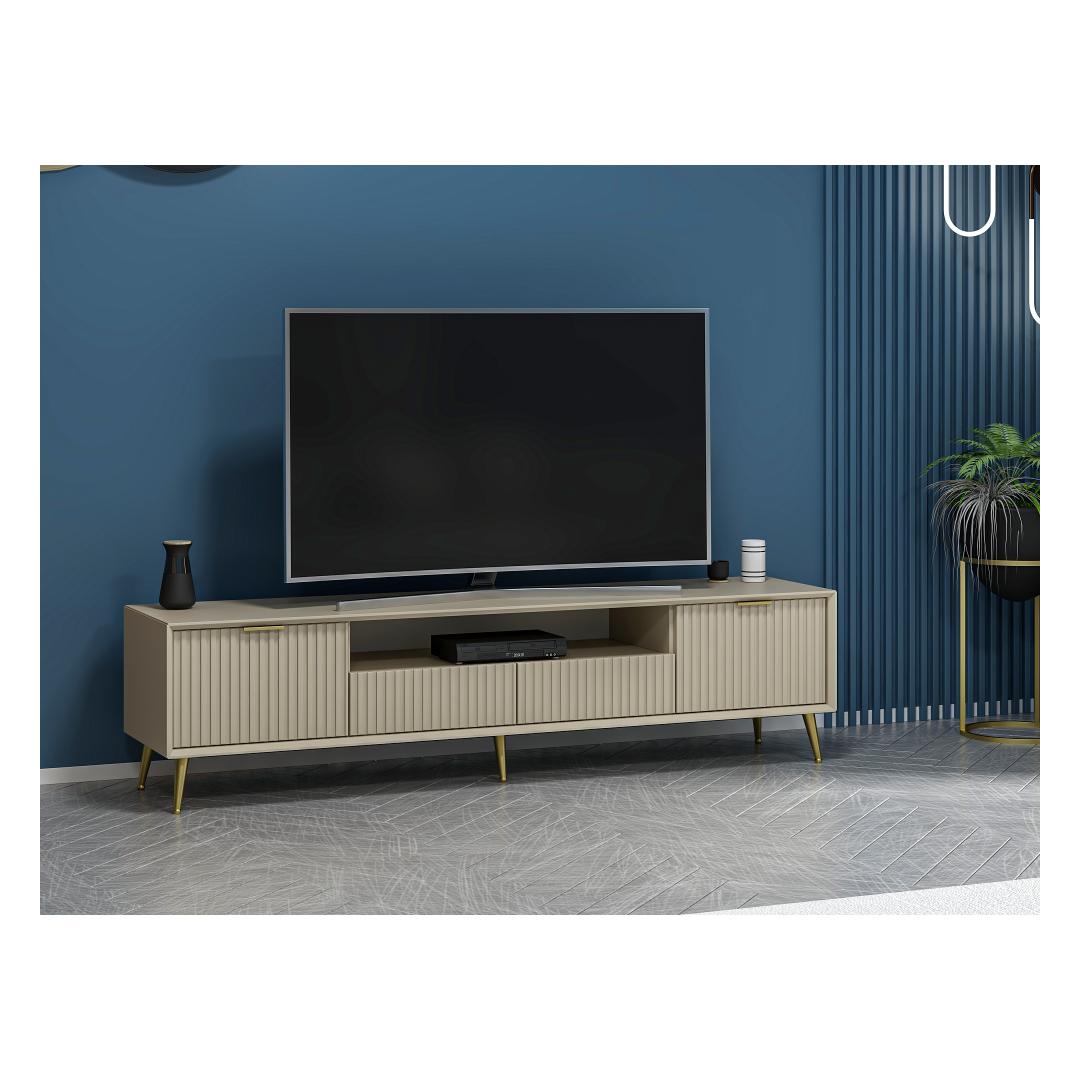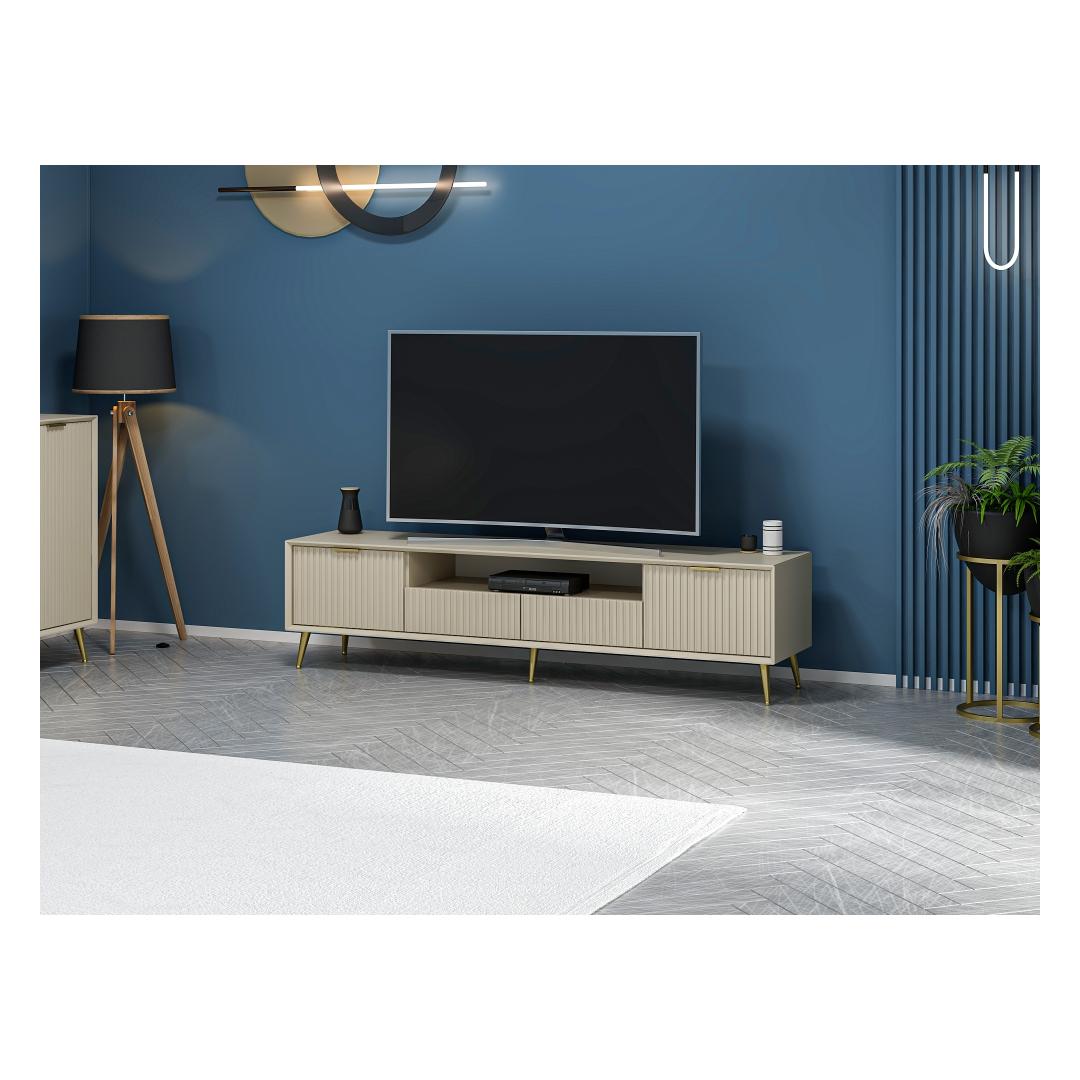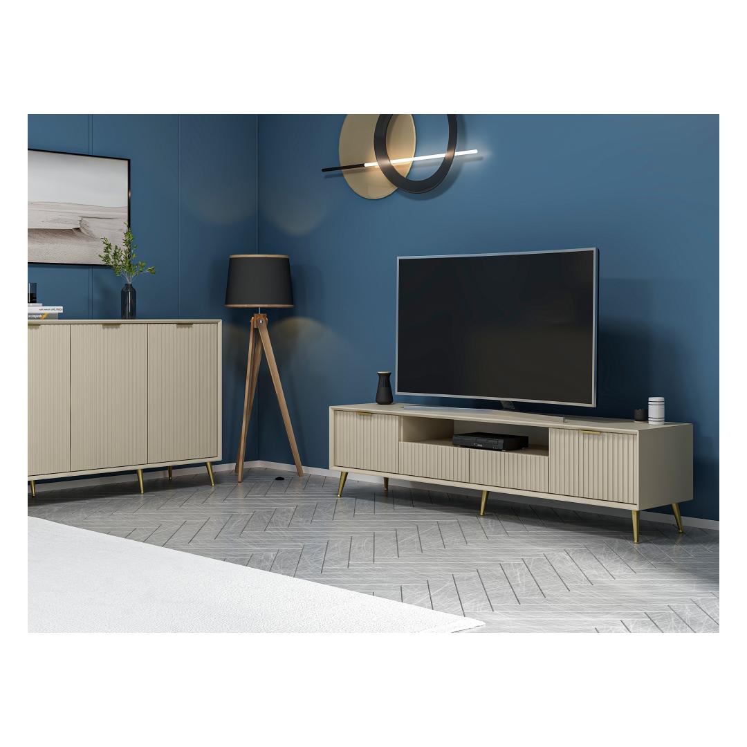 Imagine coming home after a long day and being greeted by this beautiful TV stand. Its sleek design and Sandstone color will instantly elevate the look of your living room, creating a warm and inviting atmosphere for you and your loved ones to enjoy.