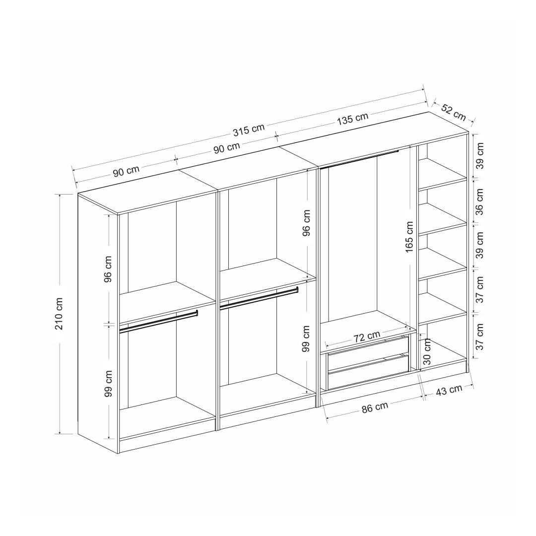 With its generous dimensions, this wardrobe offers plenty of space to store all your belongings. From clothes and shoes to accessories and more, you'll never run out of room. The numerous shelves provide convenient organization, allowing you to easily find and access your items whenever you need them.
