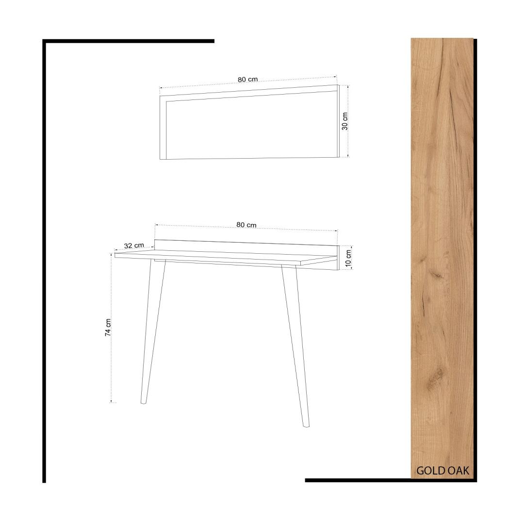 Measuring 80cm in width, 84cm in height, and 32cm in depth, this sideboard offers ample storage space without overwhelming your room. The included mirror, measuring 80cm in width and 30cm in height, adds a touch of elegance and functionality to the piece.