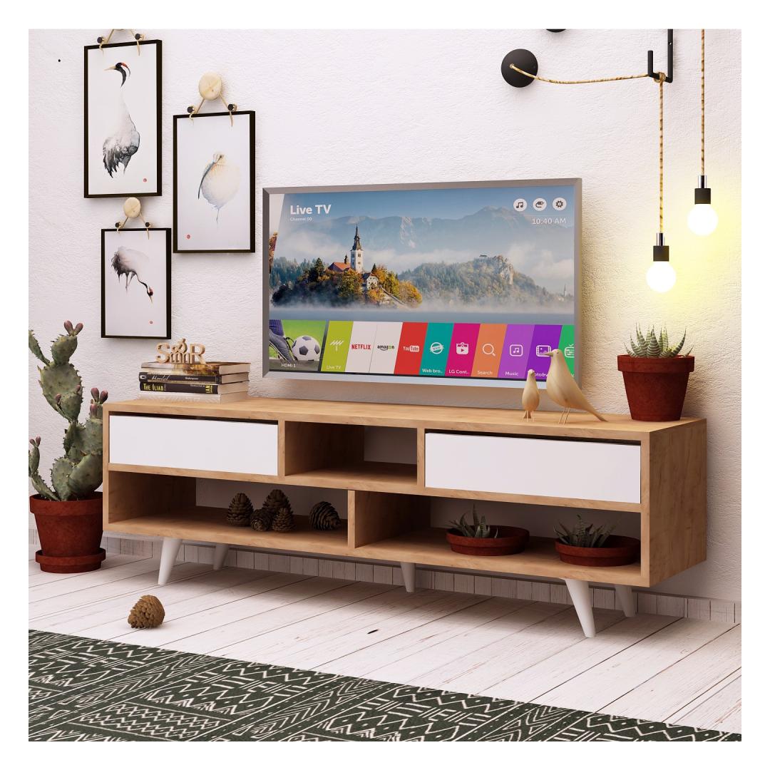 Make a statement with our TV stand. Its 100% melamine coated particle board construction ensures durability and longevity, while the oak and white color combination adds a touch of elegance to any room. Whether you have a minimalist or eclectic style, this stand will effortlessly blend in and become the focal point of your space.