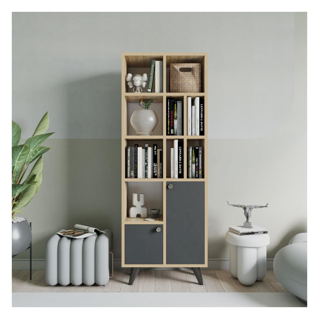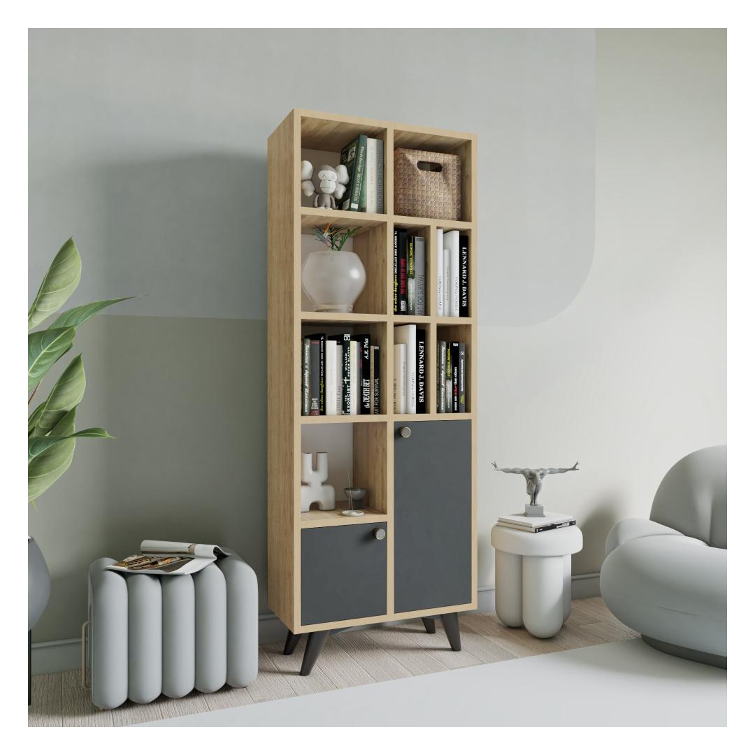 Featuring a combination of anthracite and oak colors, our bookshelf exudes elegance and sophistication. The solid color concept adds a touch of modernity, making it a standout piece in your home.
