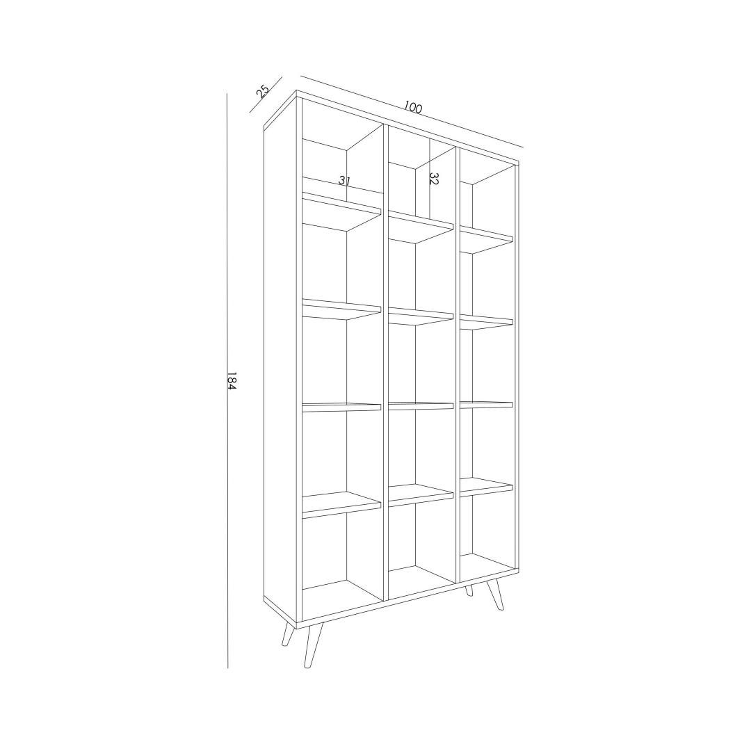 Crafted from 100% melamine coated particle board, our bookshelf is built to last. The 18 mm thickness adds sturdiness and durability, ensuring that your books will be safely stored for years to come. Its width of 100 cm, height of 184 cm, and depth of 25 cm make it the perfect size for any room.