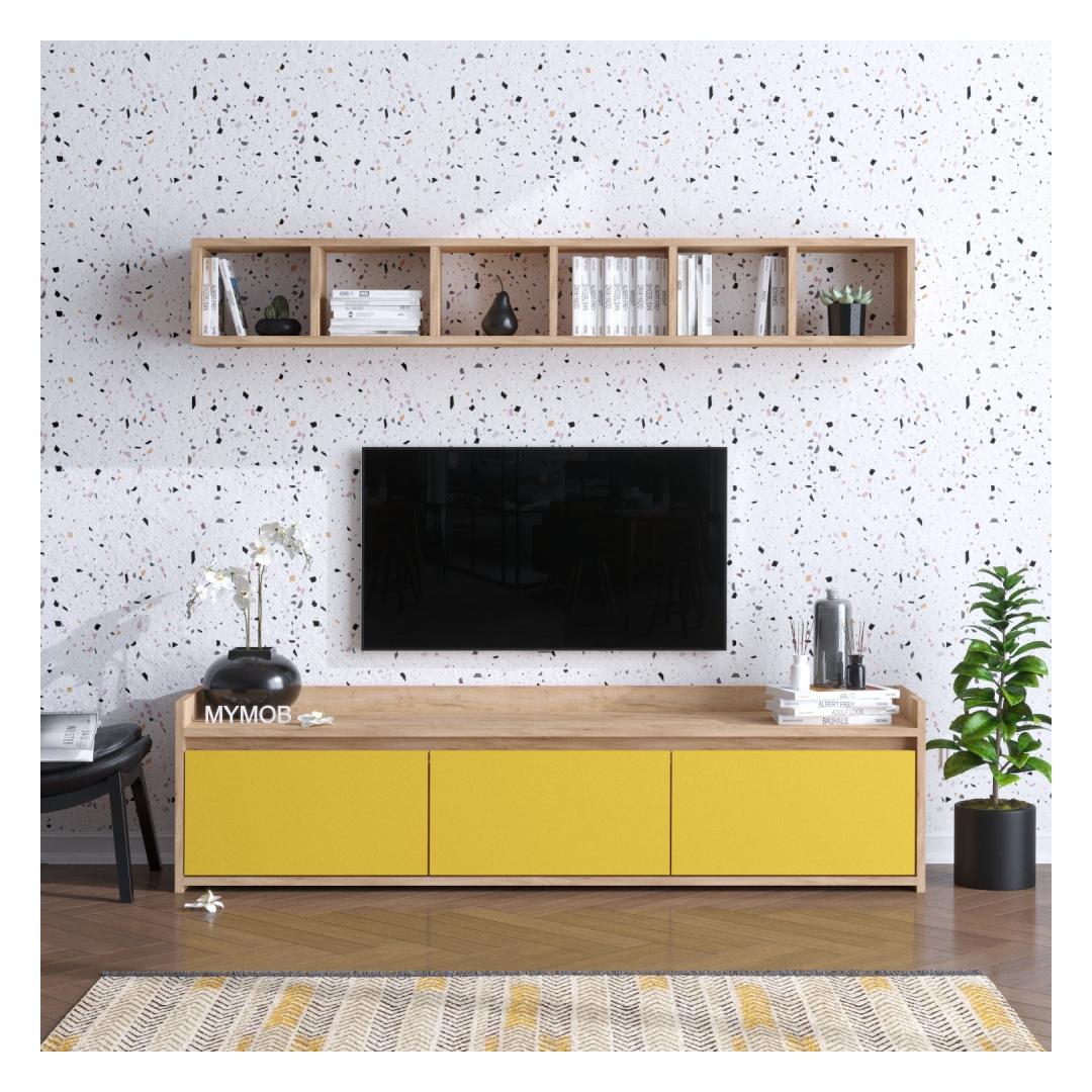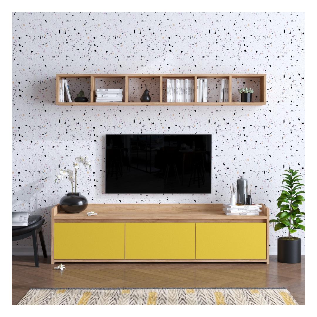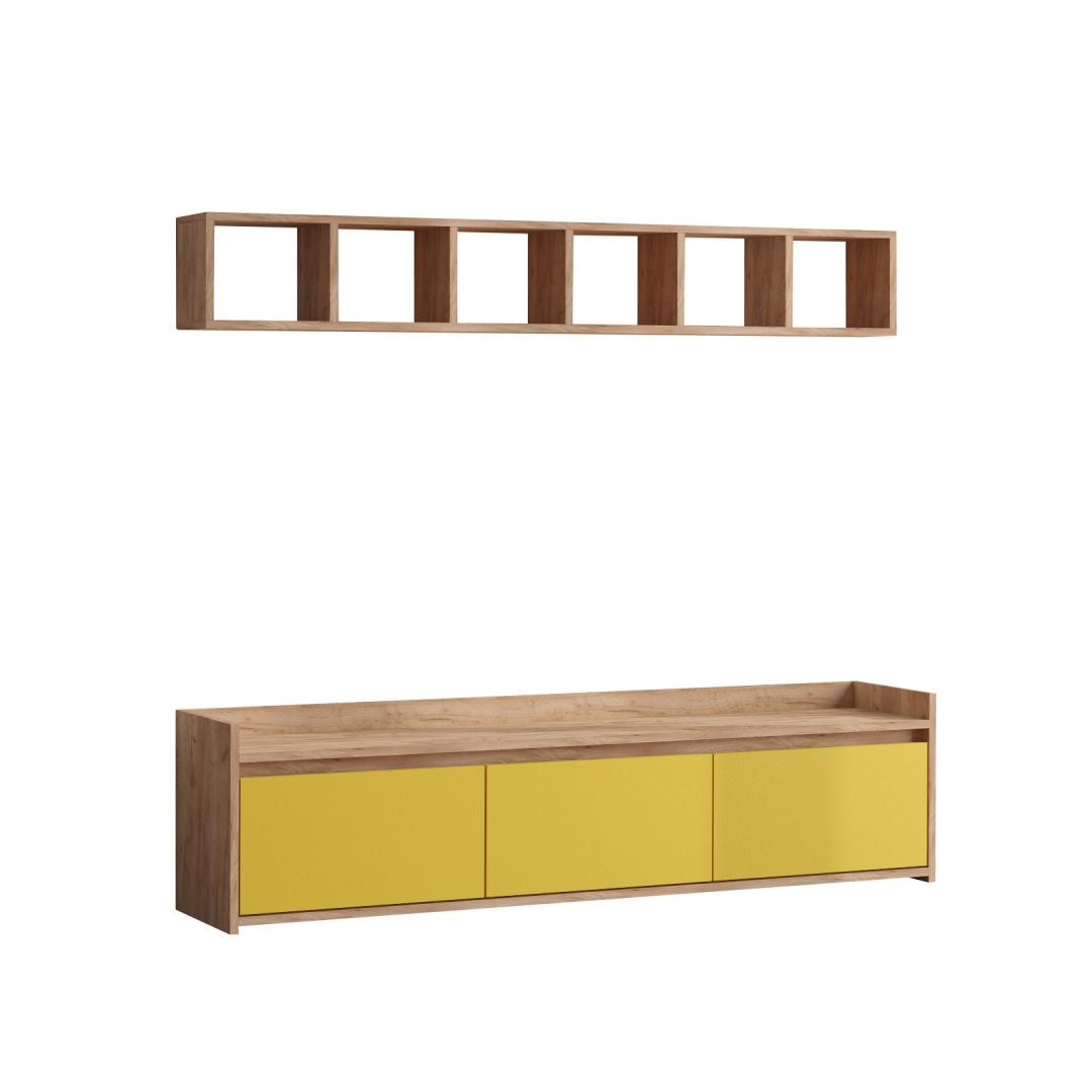 Featuring a combination of oak and yellow colors, our TV unit stands out from the crowd. Its modern and novelty concept adds a fresh and trendy vibe to any room.