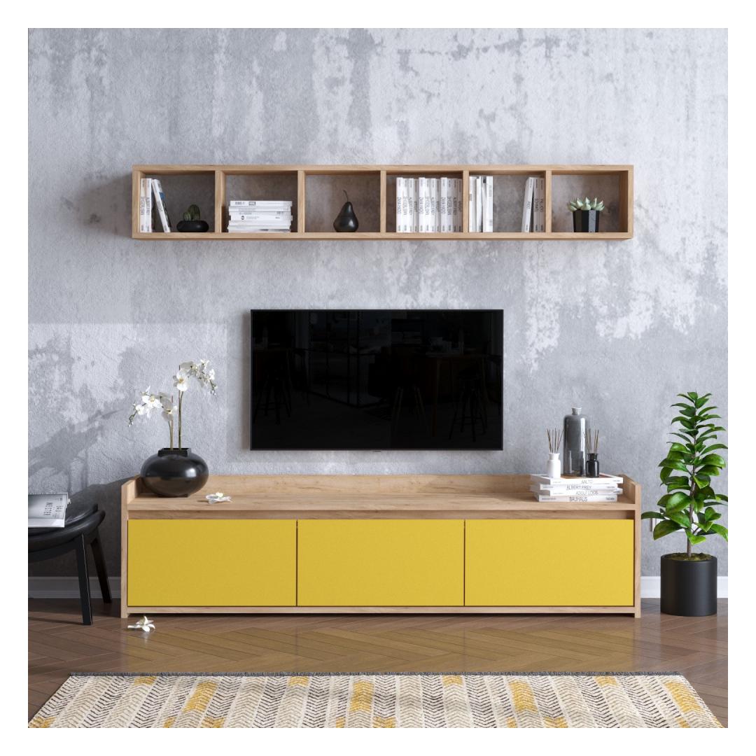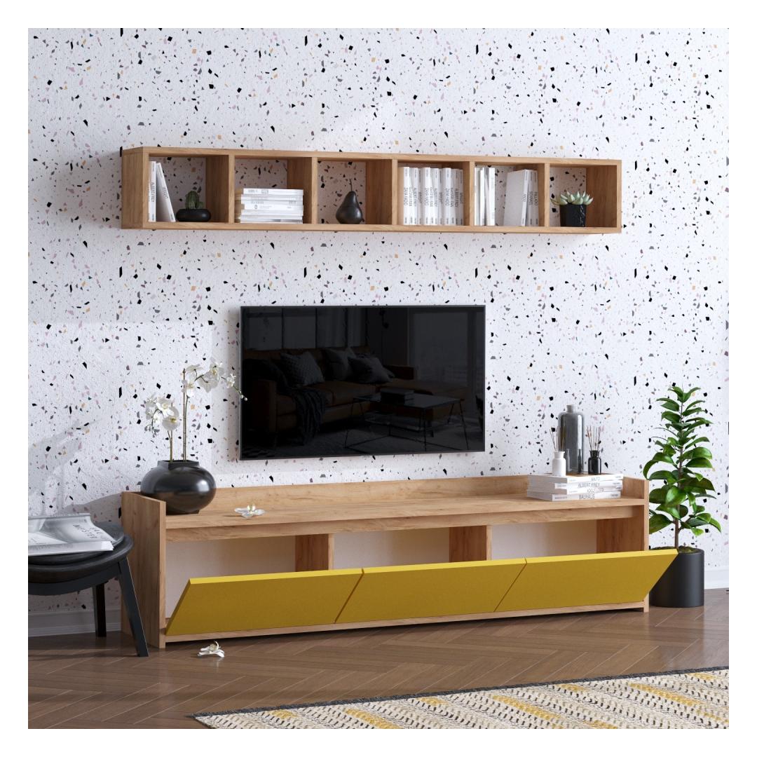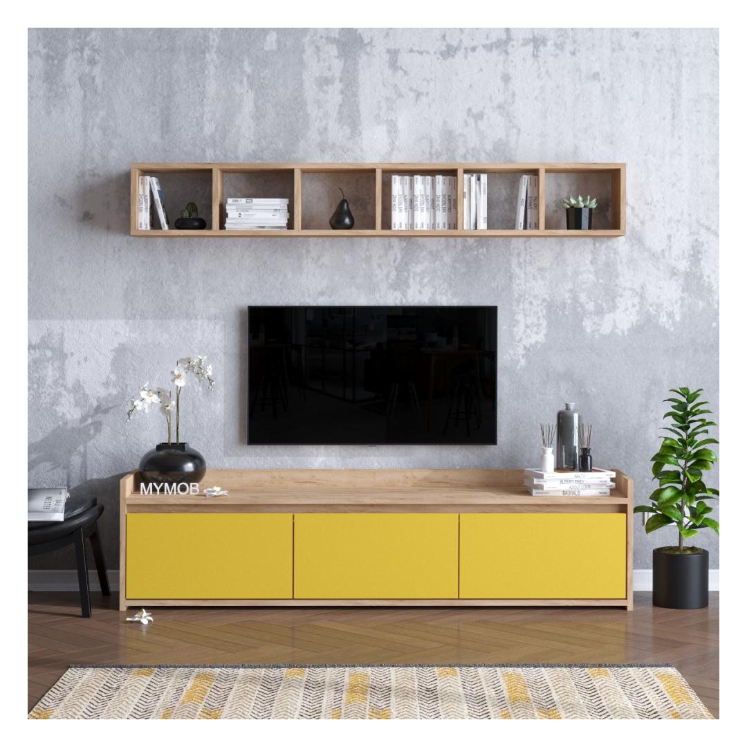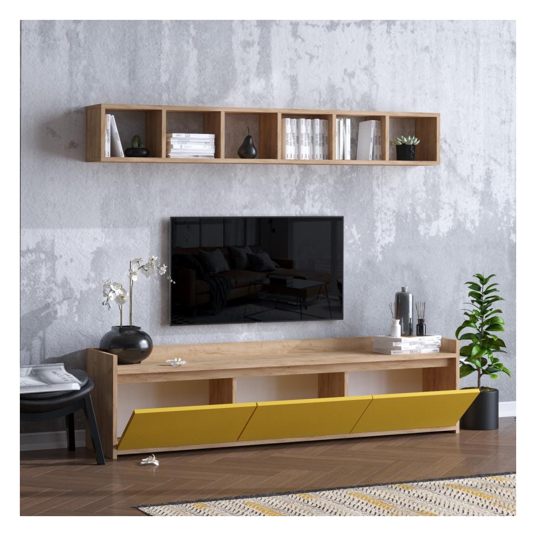 Featuring a combination of oak and yellow colors, our TV unit stands out from the crowd. Its modern and novelty concept adds a fresh and trendy vibe to any room.