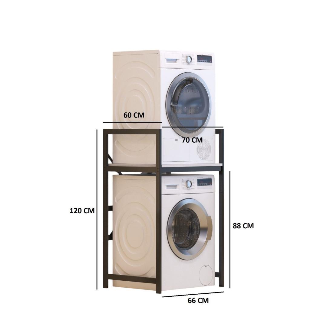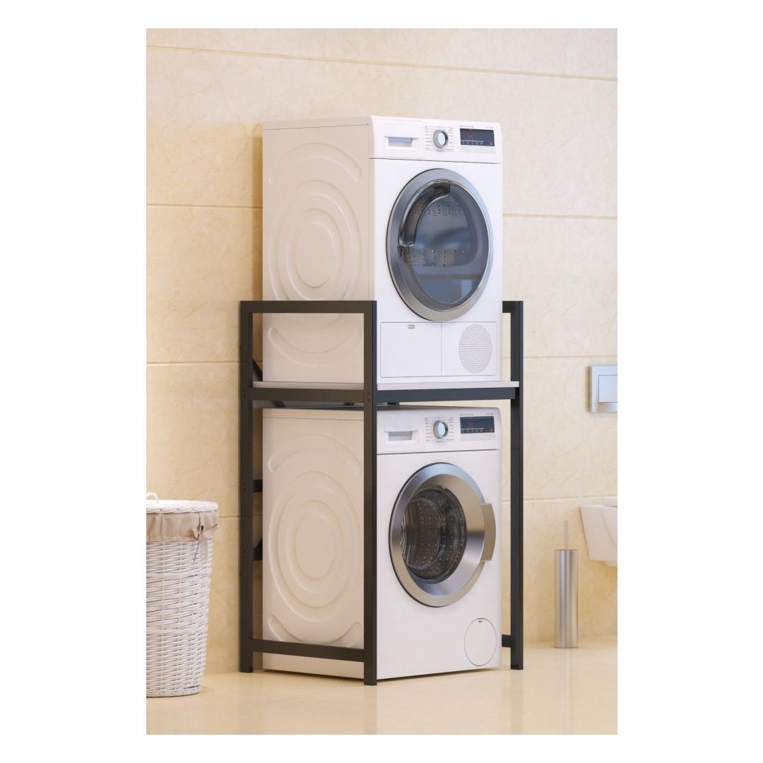 Crafted with a 100% metal frame and shelves made of melamine coated chipboard, this cabinet is built to last. The sturdy construction ensures that your washing machine is securely supported while the shelves provide ample space for storing detergent, fabric softener, and other laundry supplies.