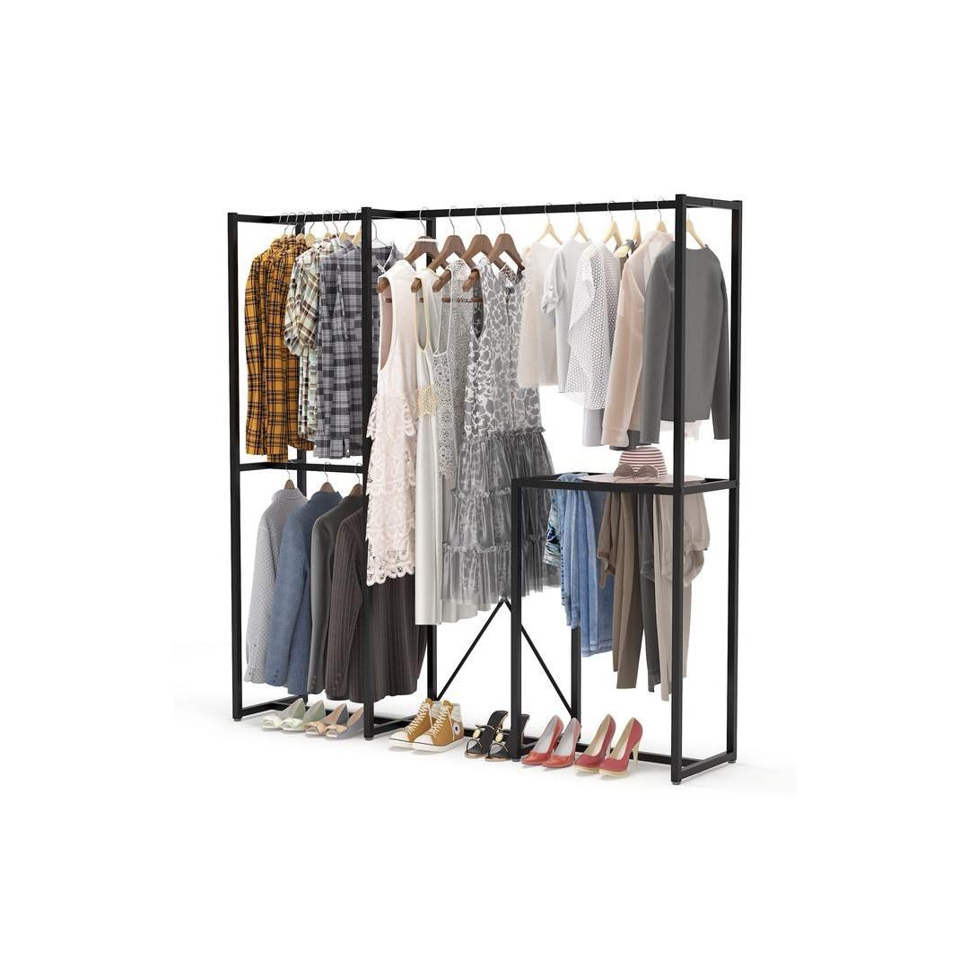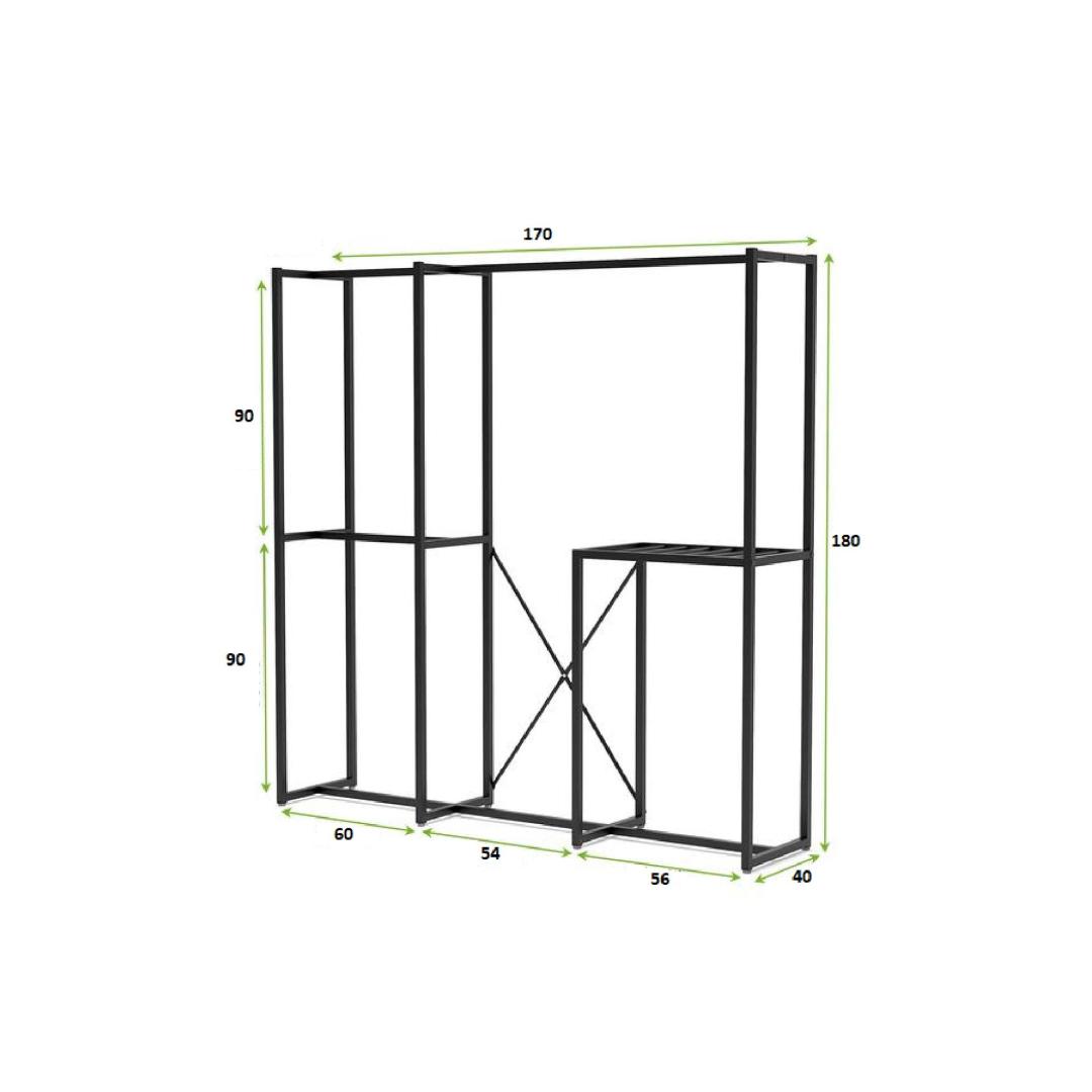 With its generous width of 170 cm, height of 180 cm, and depth of 40 cm, this coat hanger offers plenty of space for all your coats, jackets, hats, and scarves. The numerous shelves provide additional storage for shoes, bags, and other accessories, keeping your space neat and tidy.