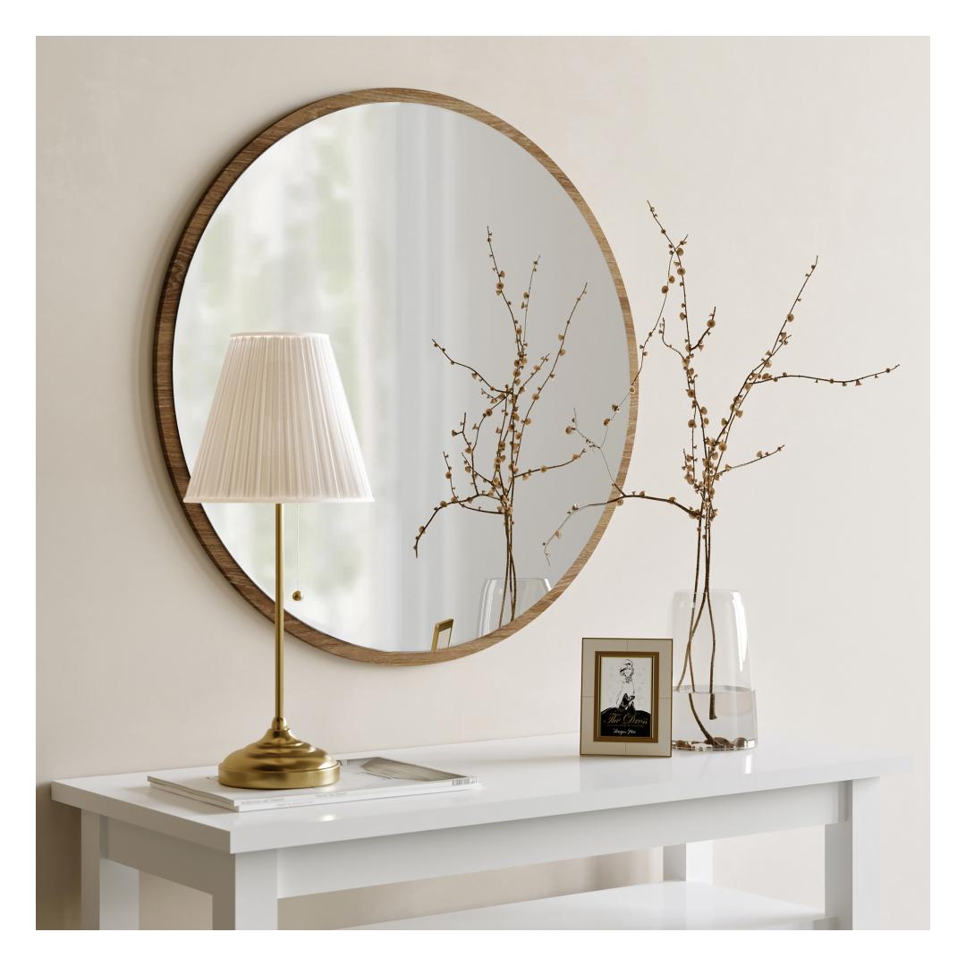 Peegel Dekoratif Yuvarlak Ayna Ceviz A707