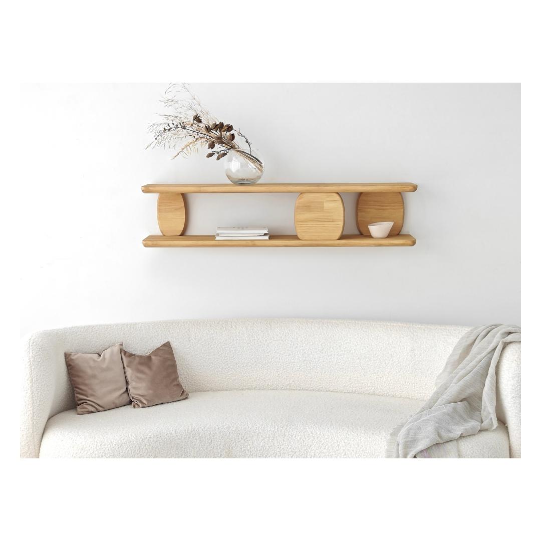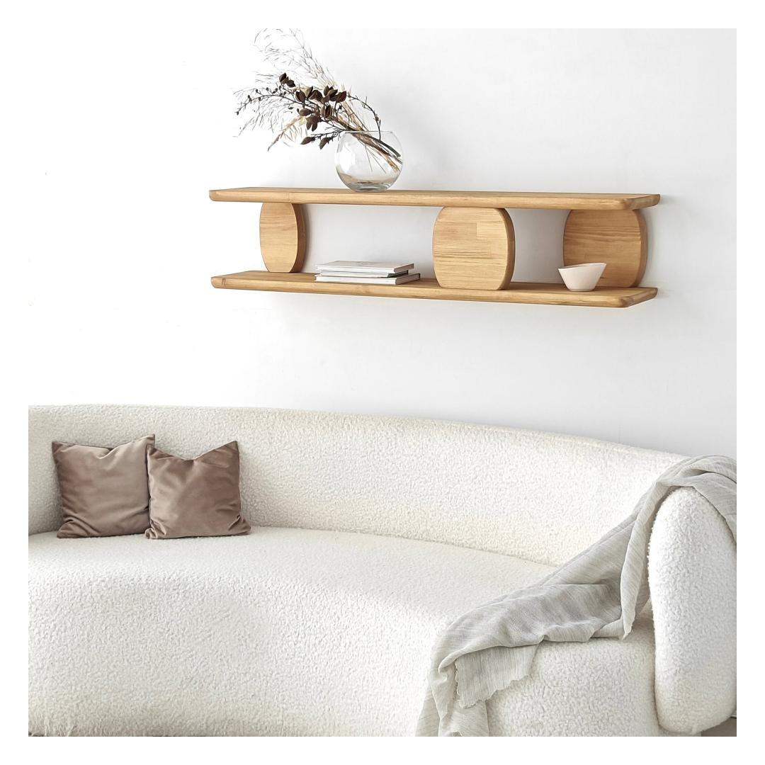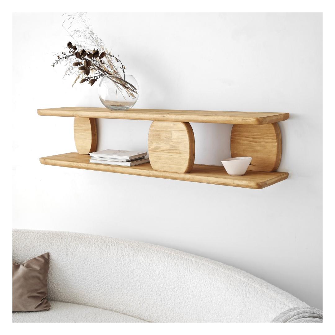 With a width of 120 cm, height of 30 cm, and depth of 24 cm, our Oak Wall Shelf offers ample space to display your favorite books, decorative items, or family photos. Its sleek and minimalist design seamlessly blends with any interior style, making it a versatile addition to your home, office, or even retail space.