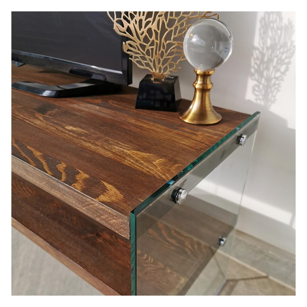 Made from 100% pine solid wood, our TV stand boasts exceptional quality and durability. The sturdy construction ensures that it will stand the test of time, allowing you to enjoy its beauty for years to come. The 8 mm thick frame is crafted from 100% tempered glass, adding a touch of elegance and sophistication to your living space.