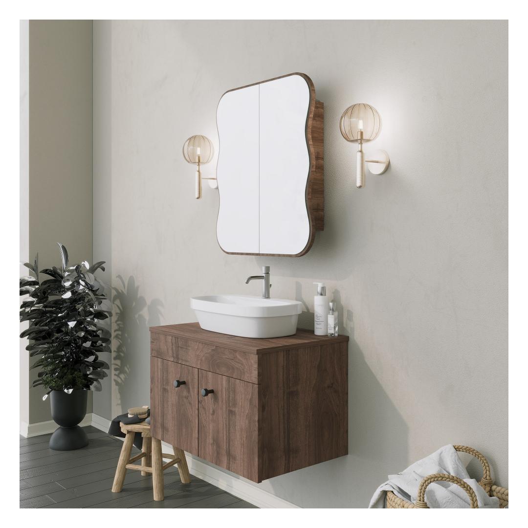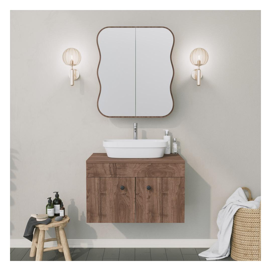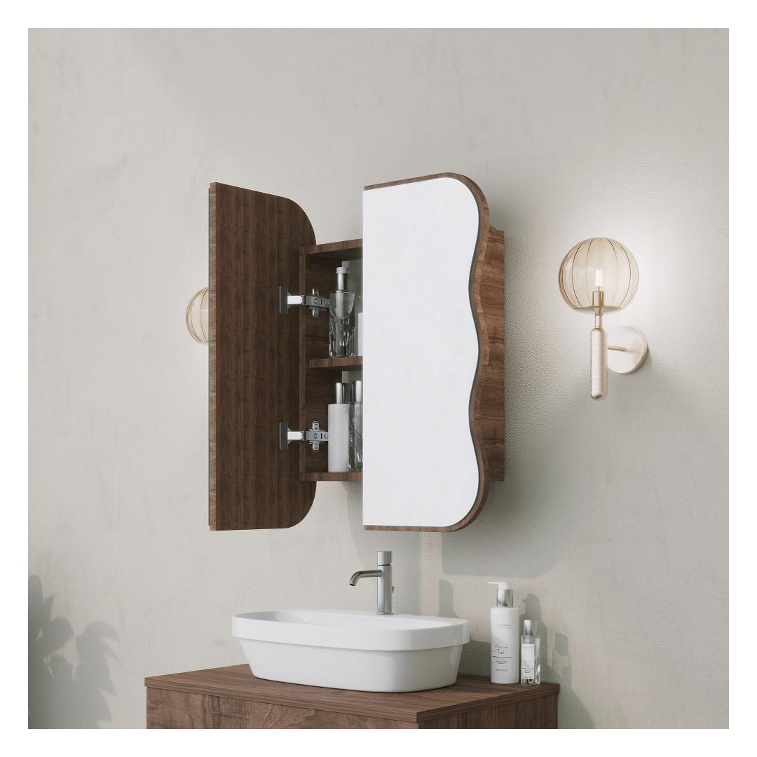 Step into your bathroom and be greeted by the sheer elegance and sophistication of our Bathroom Cabinet. Its sleek design and rich Walnut color(s) will instantly captivate your senses, creating a serene and inviting atmosphere that you'll never want to leave.