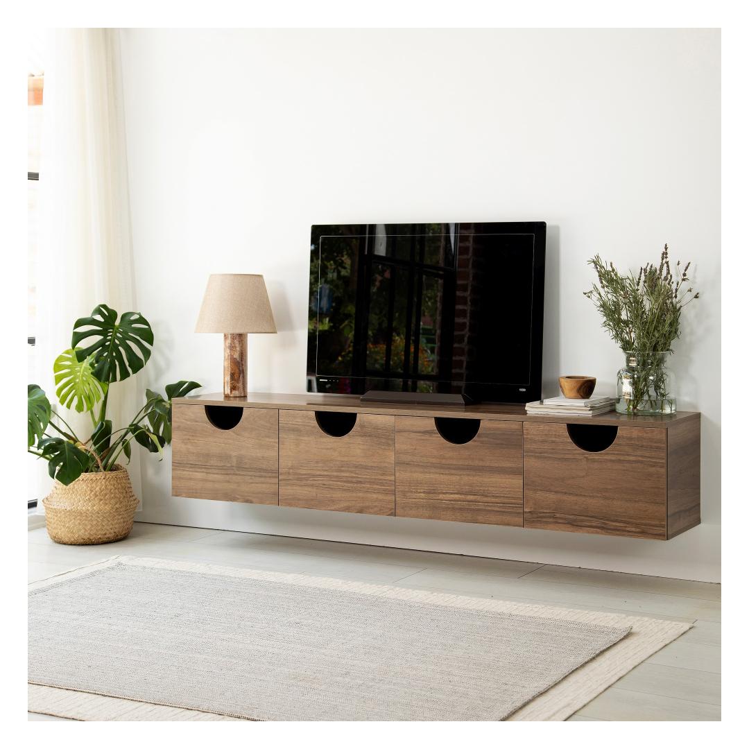 With its spacious design, our TV Stand provides ample storage space for all your media devices, including your television, gaming consoles, and sound systems. The wide 180 cm width ensures that you can comfortably accommodate large screens, allowing you to enjoy your favorite movies and shows in stunning clarity.