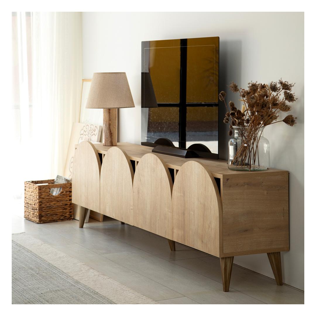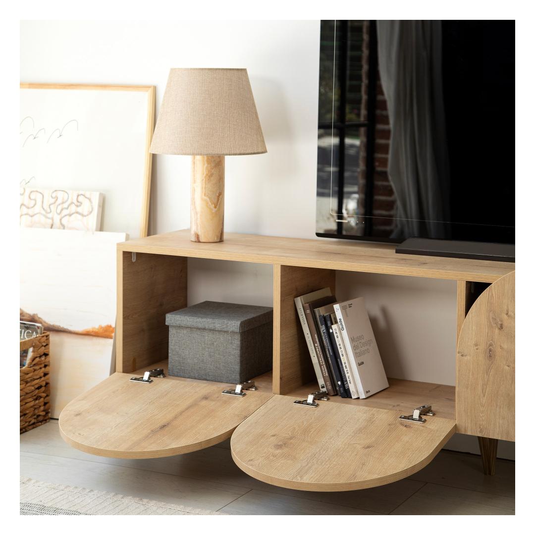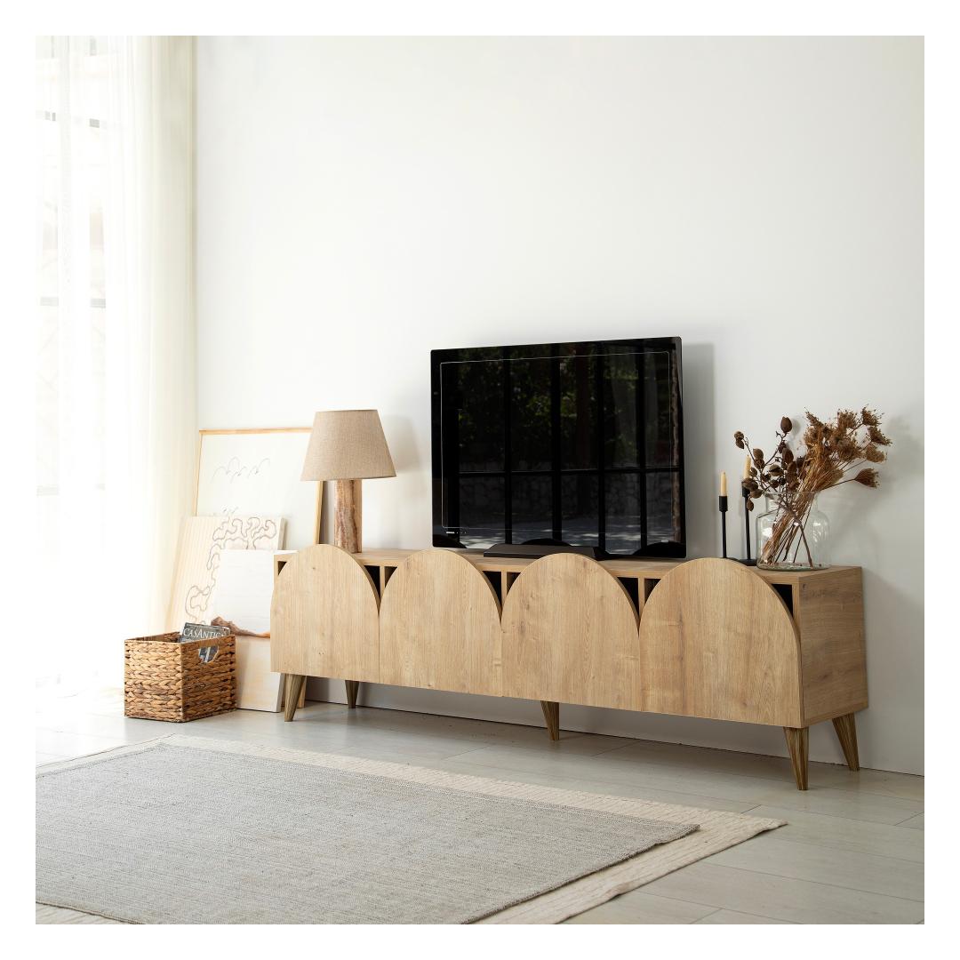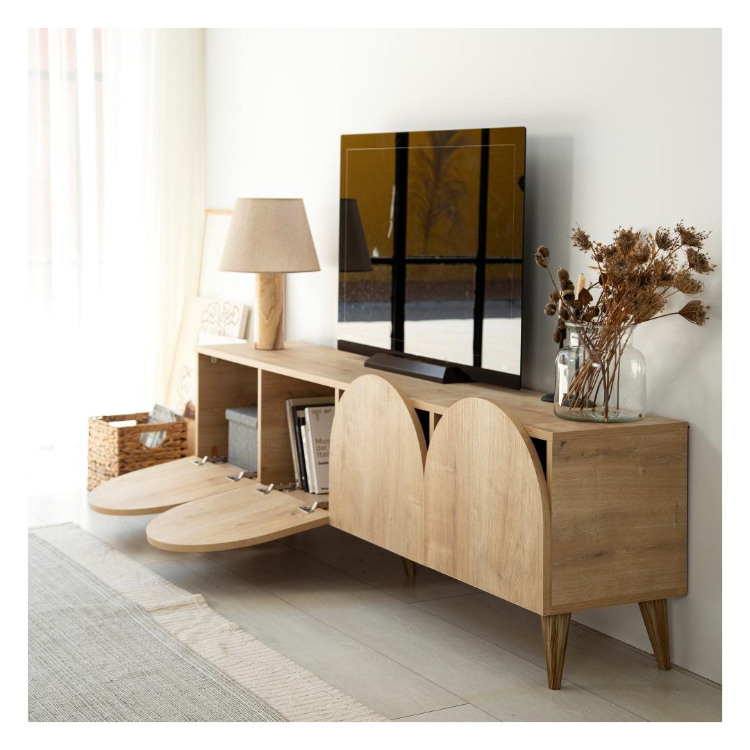 Keep your entertainment area neat and tidy with the ample storage space provided by this TV stand. The 180 cm width allows for plenty of room to display your TV and accessories, while the PVC edge bands add a polished finish to the overall look.