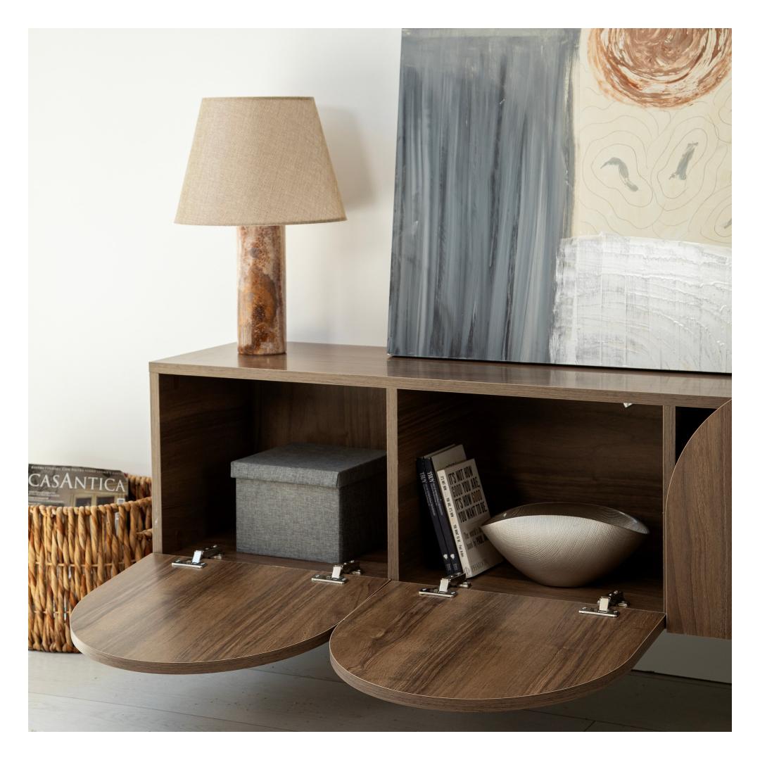 With its spacious design, our TV Stand provides ample storage space for all your media devices, including your television, gaming consoles, and sound systems. The wide 180 cm width ensures that you can comfortably accommodate large screens, allowing you to enjoy your favorite movies and shows in stunning clarity.